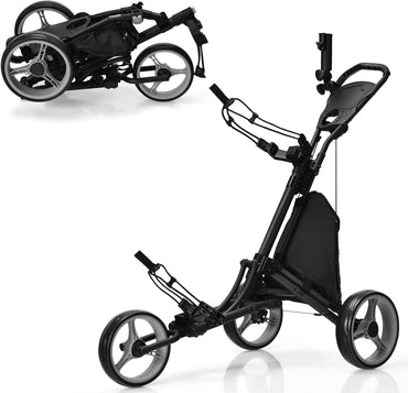 3 Wheel Golf Push Pull Cart, Lightweight Foldable Golf Trolley with Adjustable Height Handle