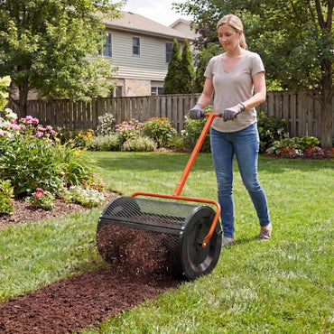 Giantexuk 27’’ compost spreader, peat moss seeding manure fertiliser garden spreader roller