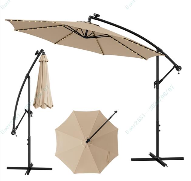 303 cm solar-powered patio offset umbrella with 112 led lights