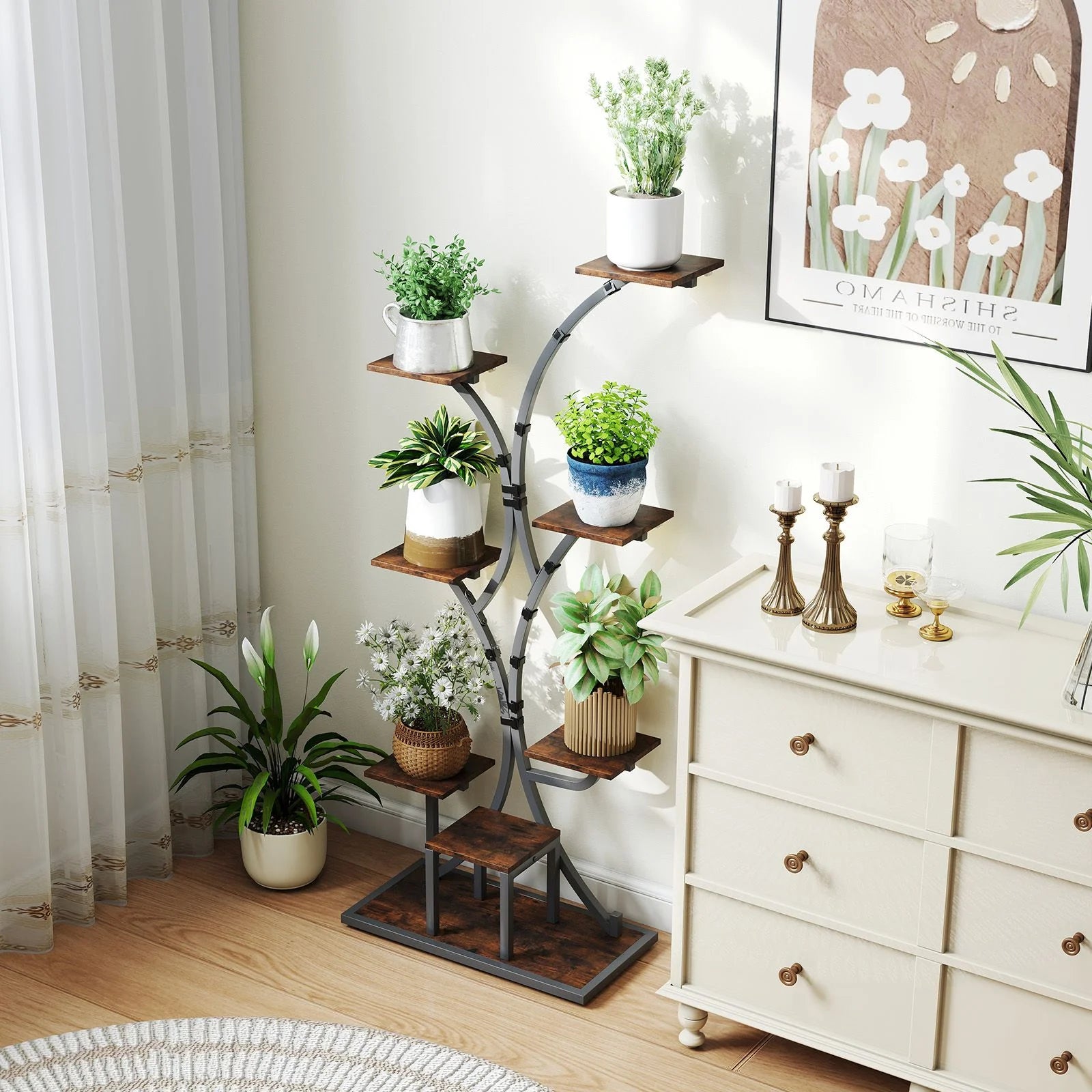 6-tier plant stand, 7 potted flower rack high low display shelf for garden balcony patio living room(6 tiers, without fence)