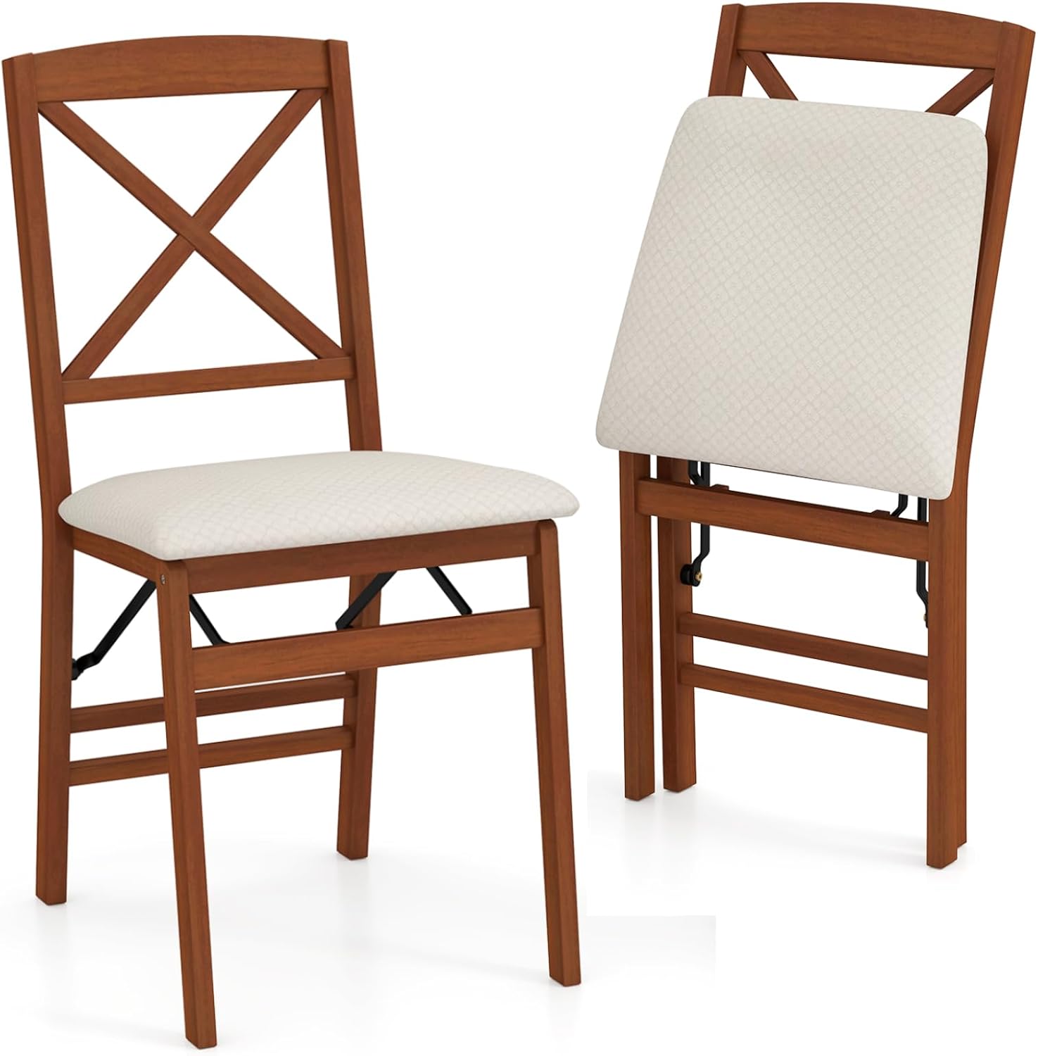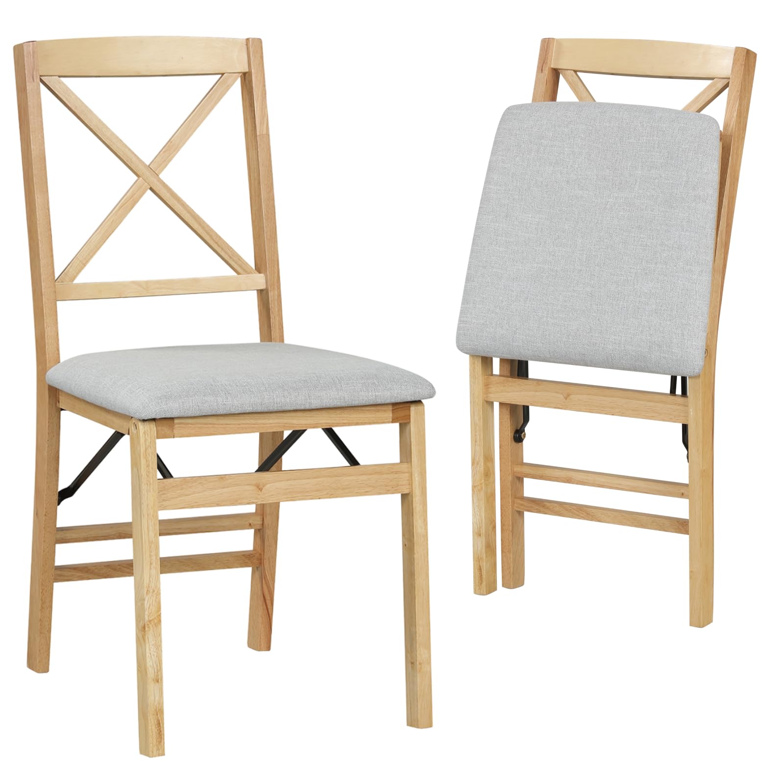 Padded Folding Chair Set of 2/4, Rubber Wood Counter Dining Chairs with Backrest