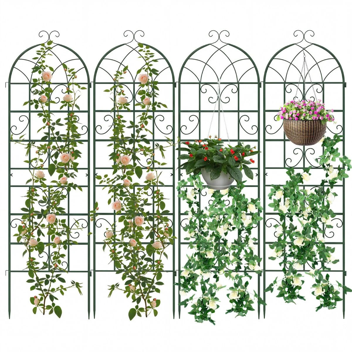 Giantexuk 180/220x50cm garden trellis, 2/4 pack tall galvanized metal fence climbing plants support frame