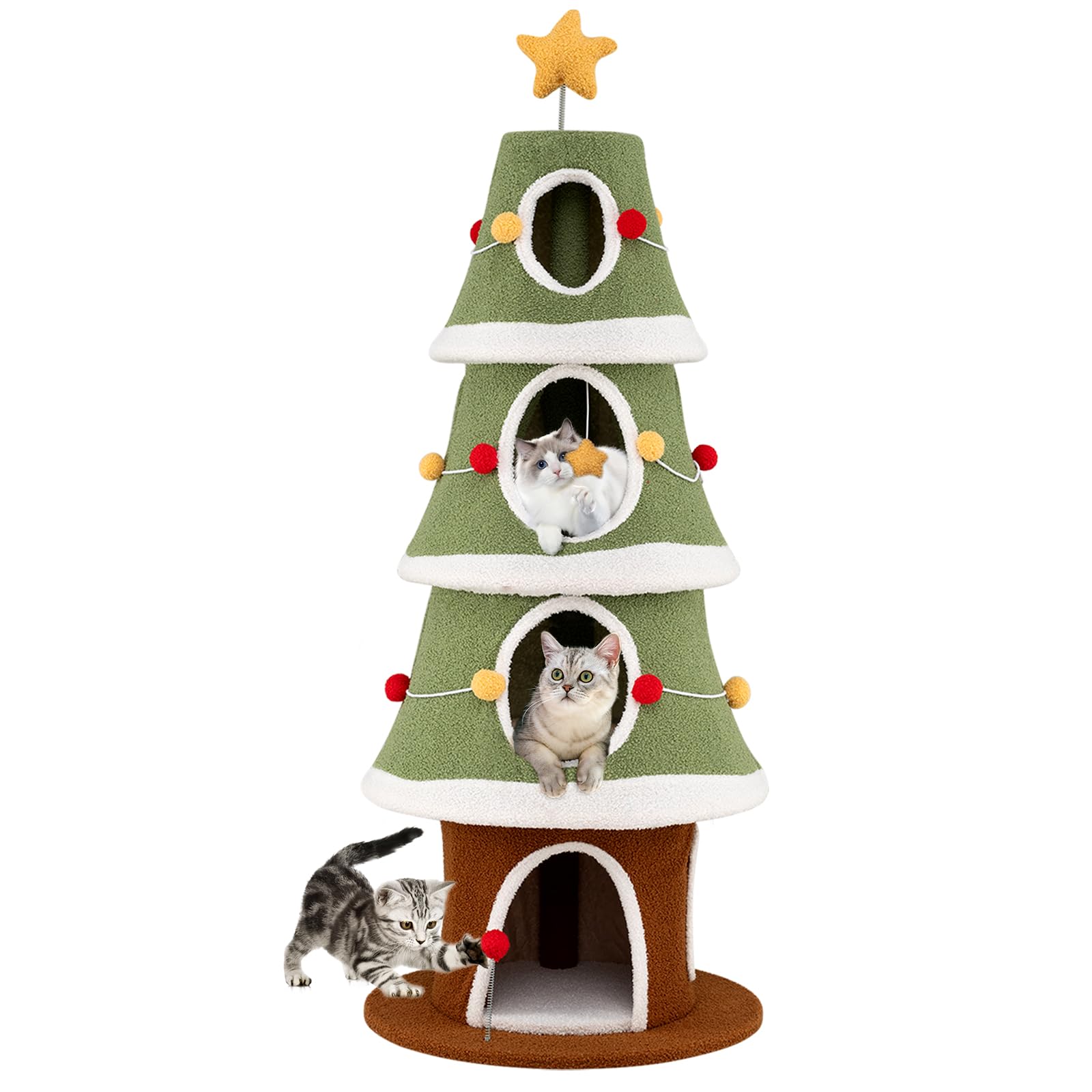 The Christmas cat tower comes with 3 interactive toys to stimulates cat’s natural hunting instincts and keeps them engaged. The 4-tier condo layout provides ample space for...