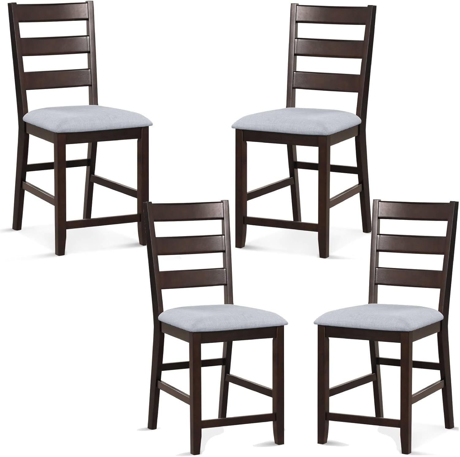 Giantexuk bar stools set of 2/4, upholstered linen fabric barstools with slatted backrest, footrests & anti-slip foot pads