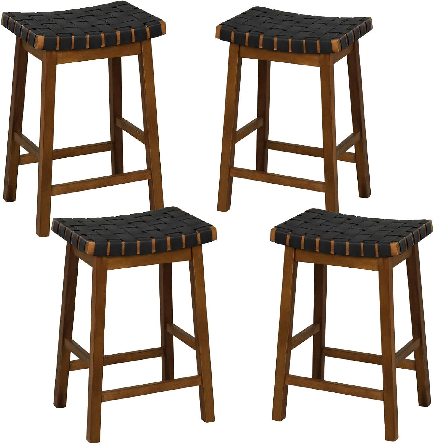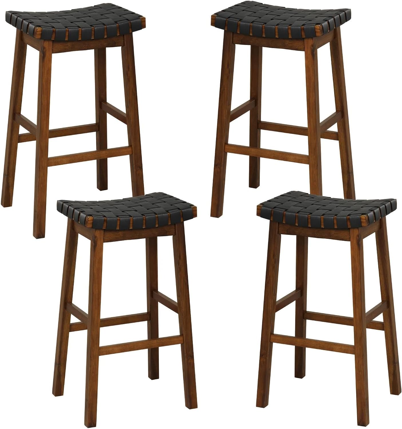 Giantexuk saddle stools set of 2/4, pu leather woven kitchen counter height stools with curved seat (46x37x78cm)