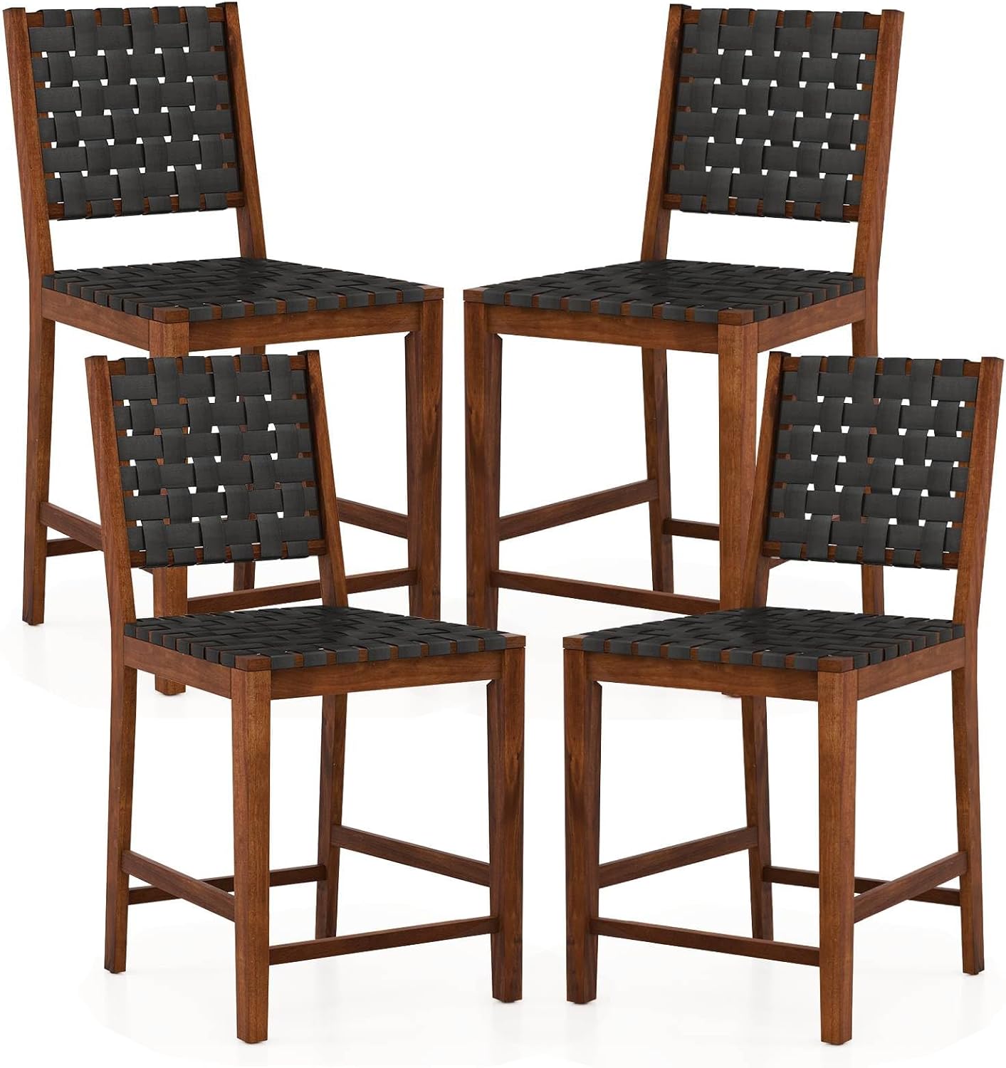 Giantexuk bar stools set of 2/4, pu leather woven kitchen barstools with backrest & rubber wood footrests