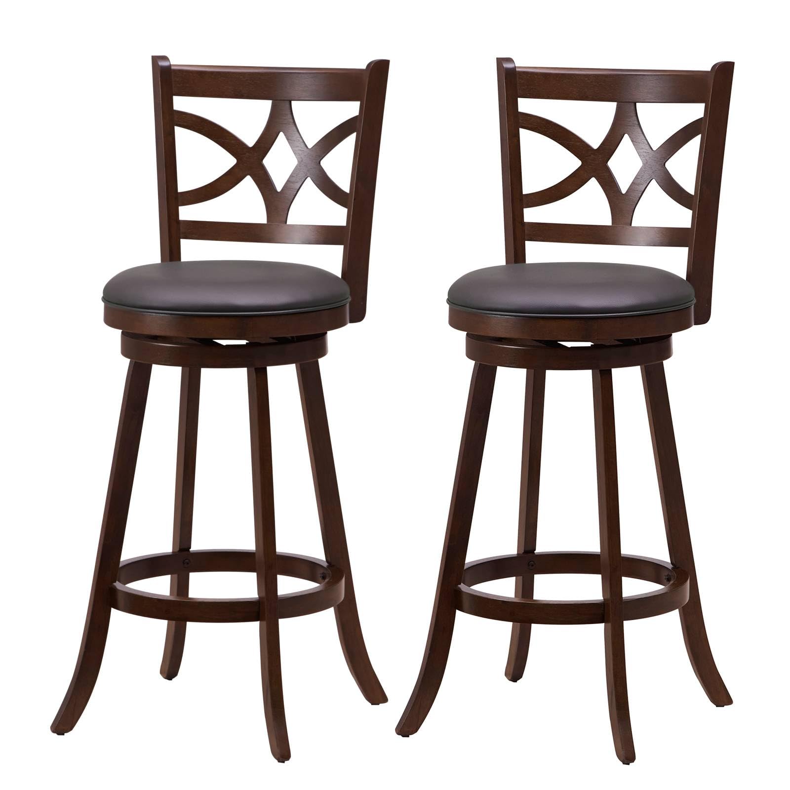 Giantexuk swivel bar stools set of 2, rubber wood kitchen barstools with pvc cover seat, back & footrest (47 x 44 x 96cm)