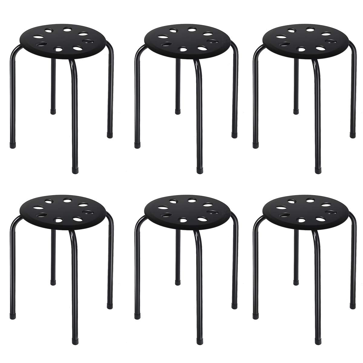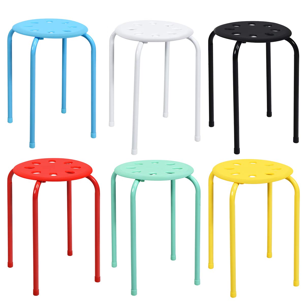 Giantexuk 6pcs stacking stools, set of 6 plastic round bar stools with metal frame & anti-slip foot mats