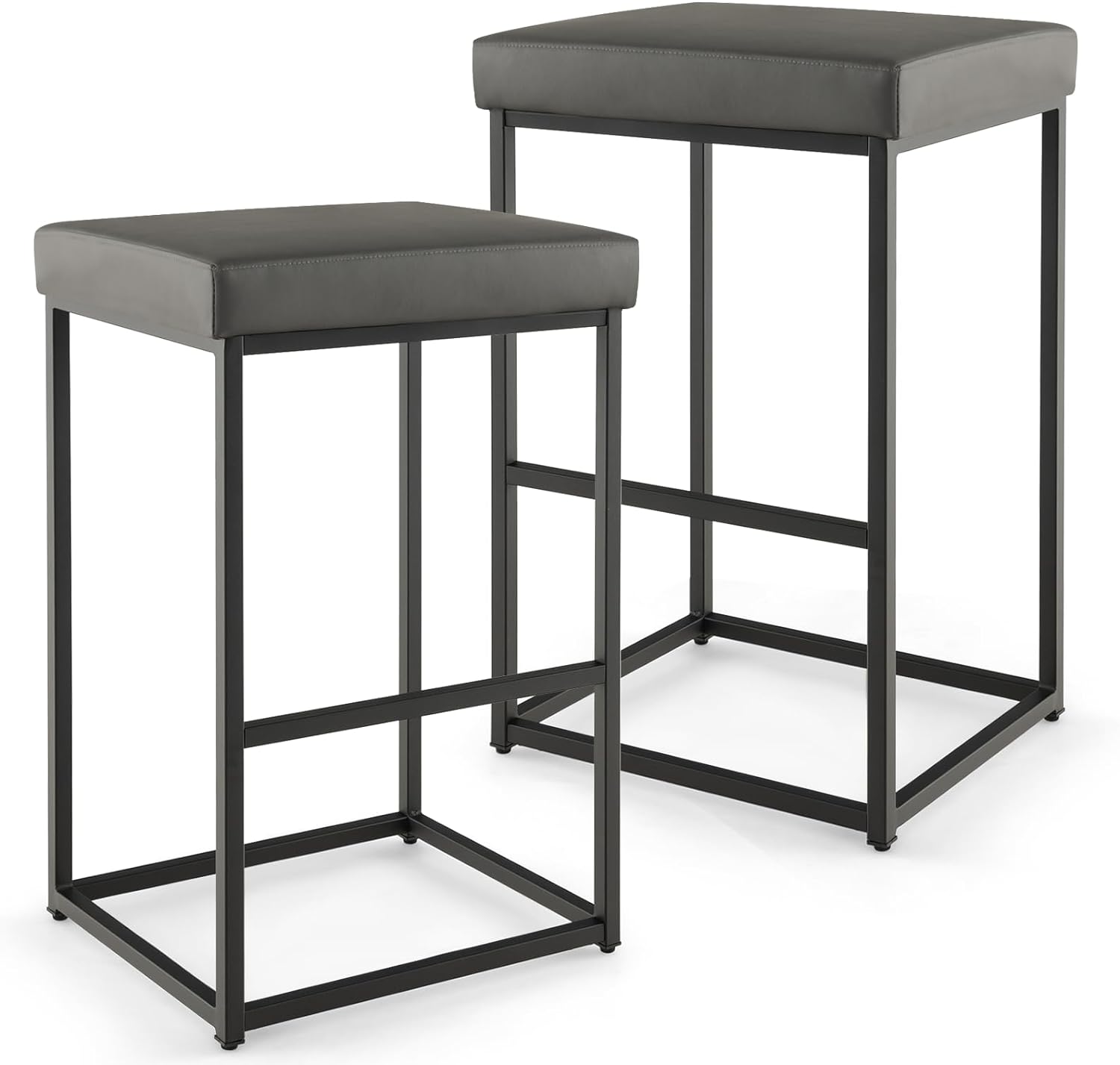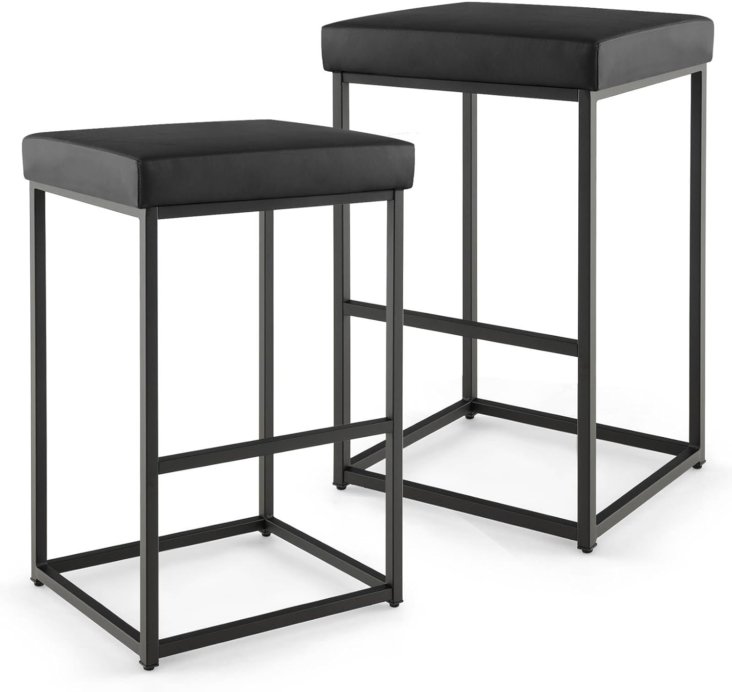 Giantexuk bar stools set of 2, upholstered pu leather kitchen barstools with footrest & adjustable foot pads