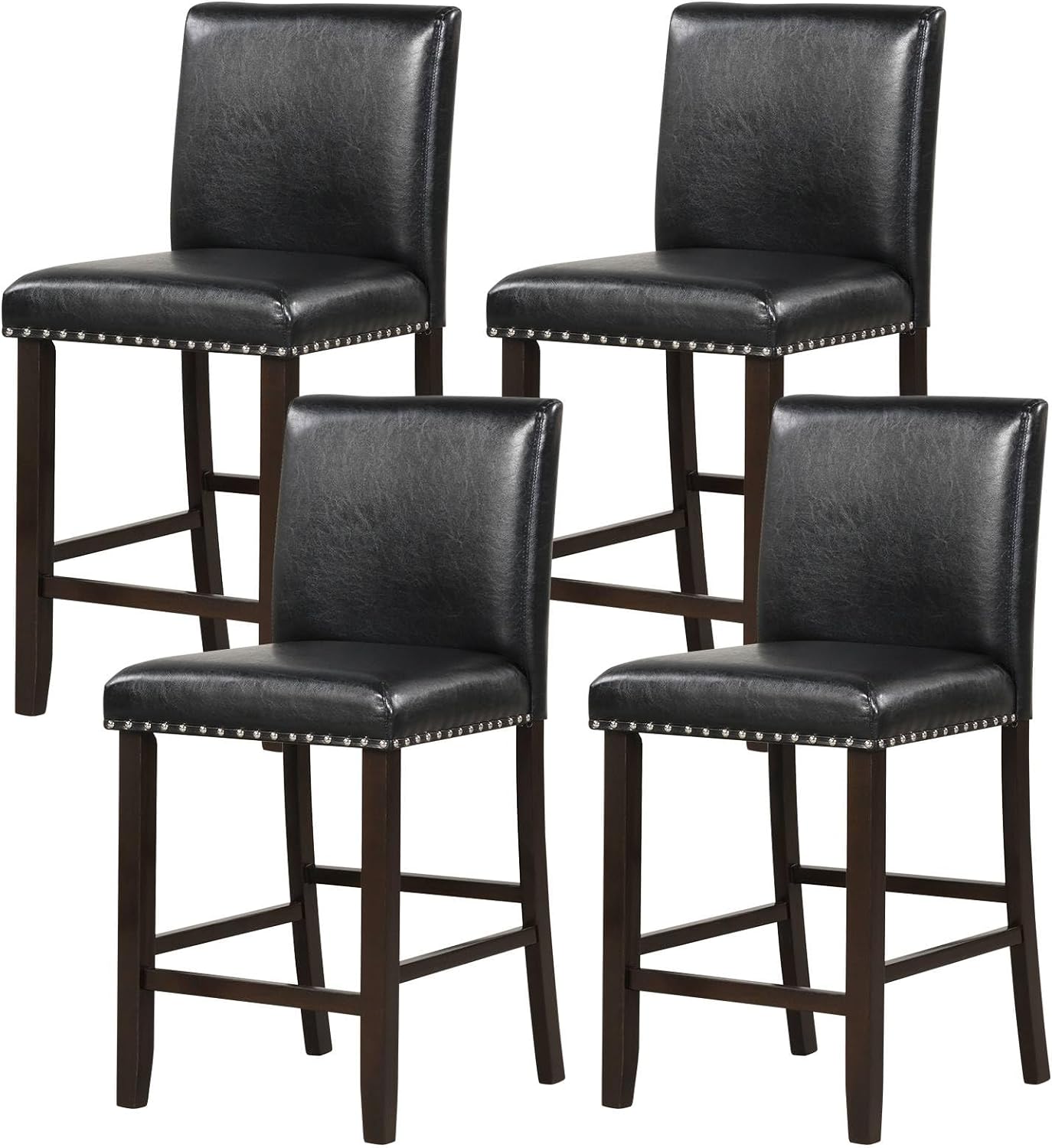 Giantexuk bar stools set of 2/4, upholstered barstools with padded backrest & footrests, counter height breakfast bar chairs(black)