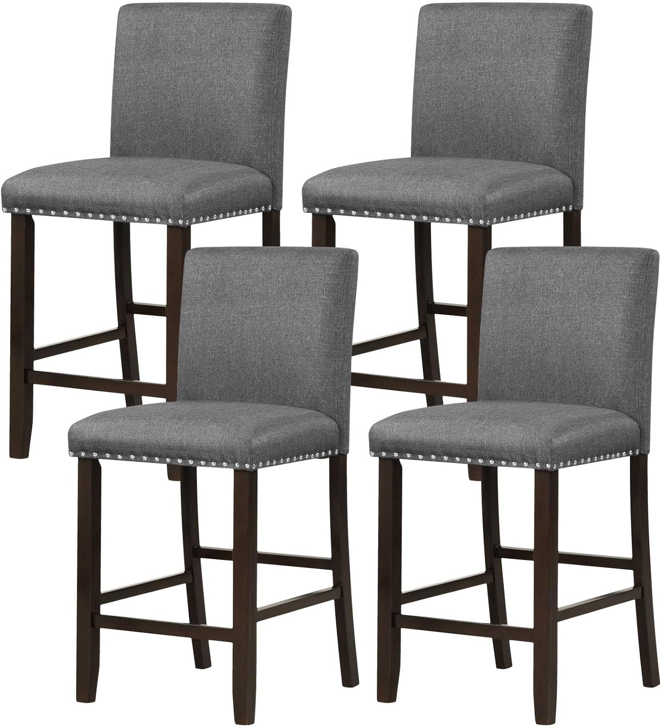Giantexuk bar stools set of 2/4, upholstered barstools with padded backrest & footrests, grey