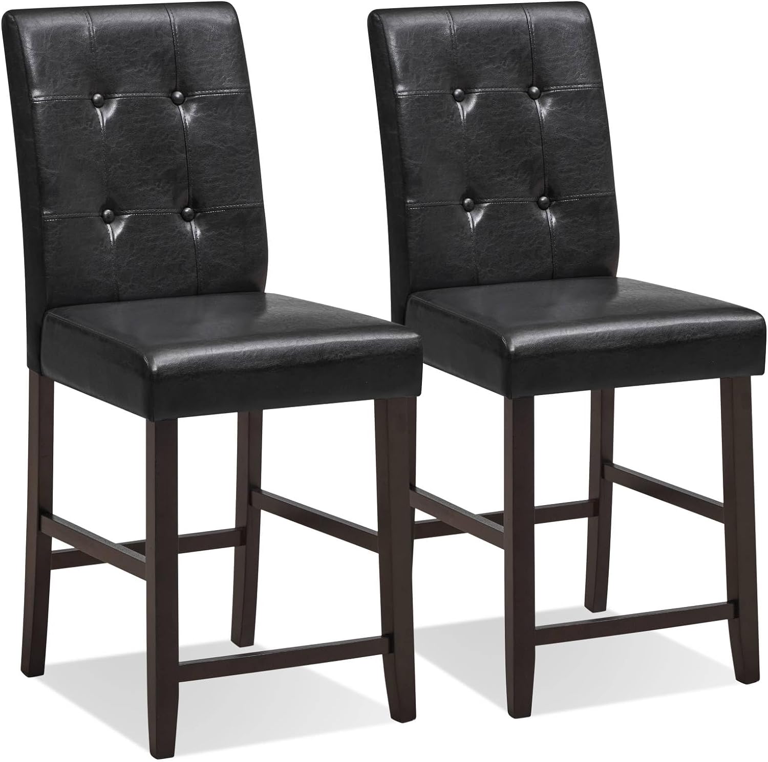 Giantexuk bar stools set of 2, pu leather upholstered barstools with backrest & footrests (black+brown)