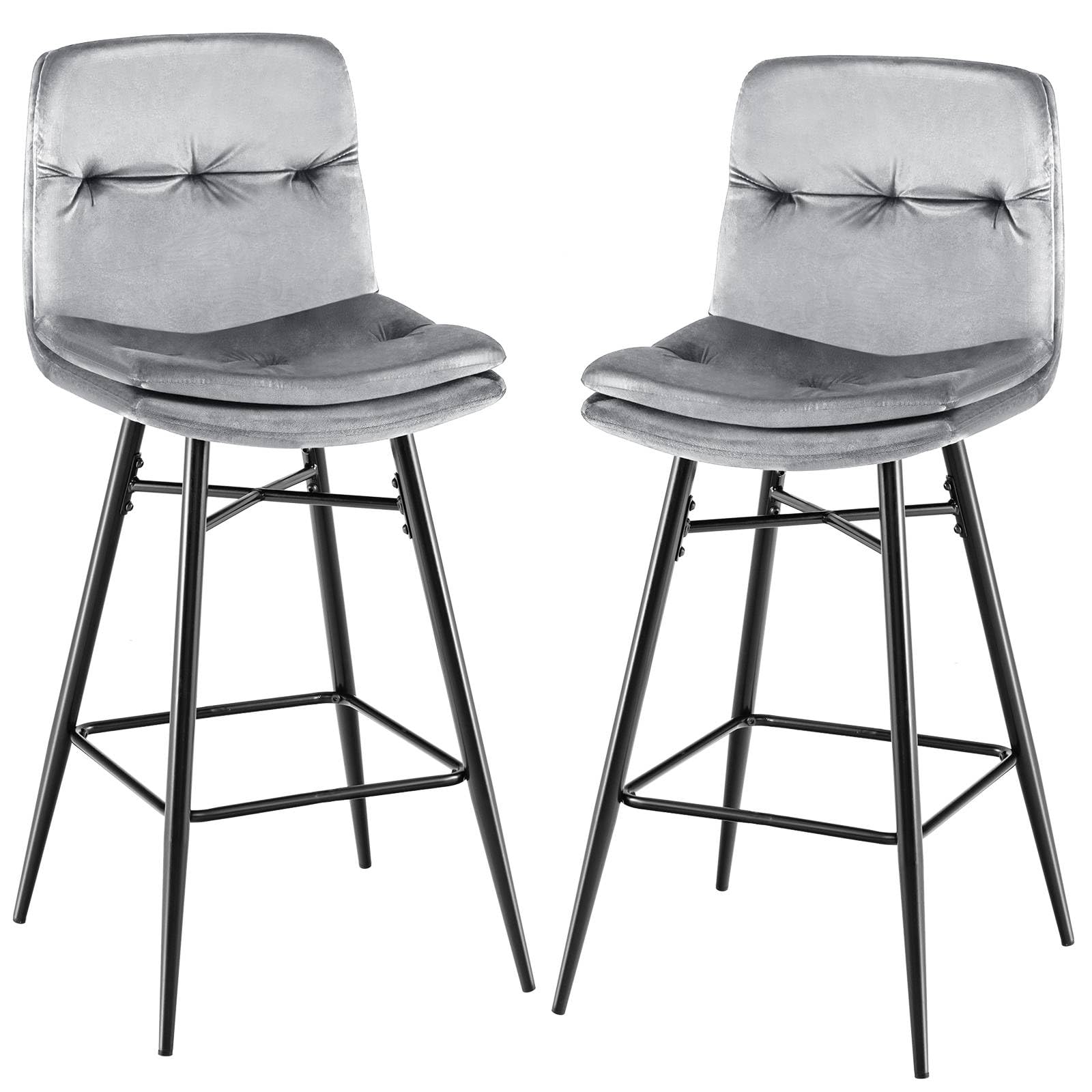 Giantexuk bar stools set of 2, velvet upholstered kitchen barstools with curved tufted back & footrests