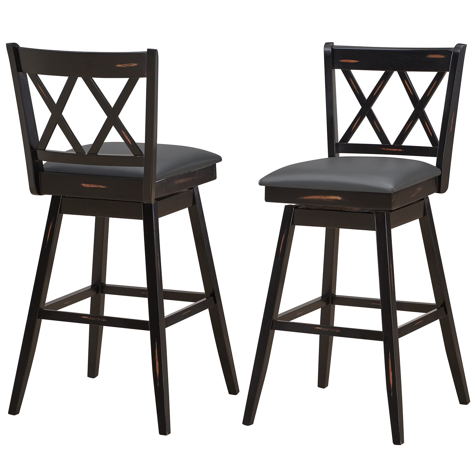 Giantexuk bar stools set of 2, rubber wood swivel barstools with back & footrest