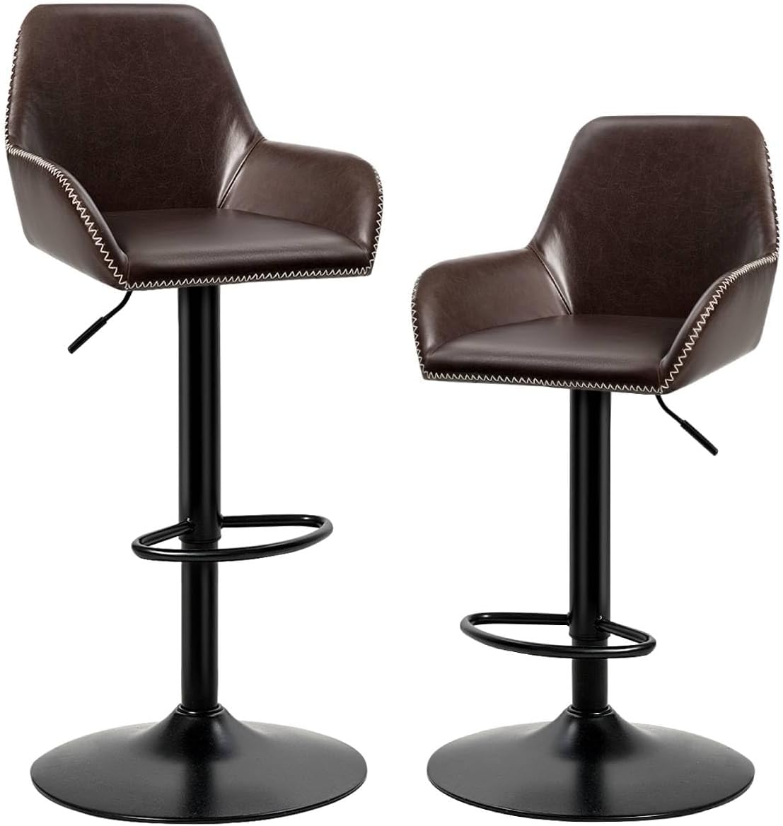 Giantexuk bar stools set of 1/2, pu leather swivel height adjustable barstools with backrest, armrest, gas lift & footrest