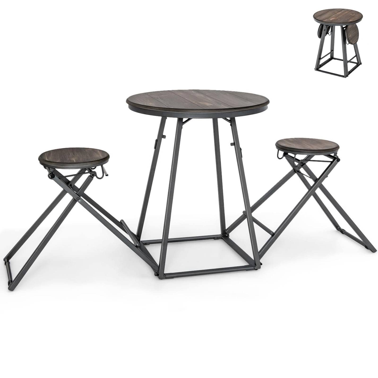 Giantexuk foldable table and stool set, space saving dining table with 2 chairs and footrest, kitchen breakfast table furniture for home dining room pub