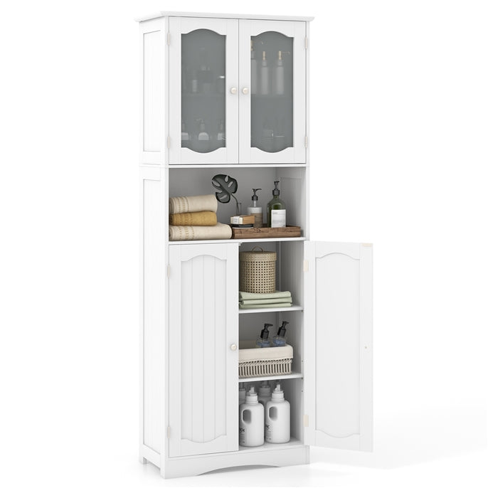 Upgrade your bathroom storage with our versatile tall bathroom cabinet! This sleek floor cabinet features a frosted tempered glass-door cabinet, open compartment, and double-door cabinet, providing...