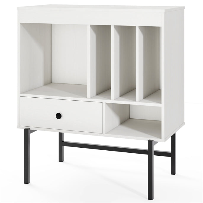 Featuring extra open storage shelf and storage compartment with dividers, this stand is perfect for organizing your vinyl record collections, books, CDs, or audio. The built-in charging station with...