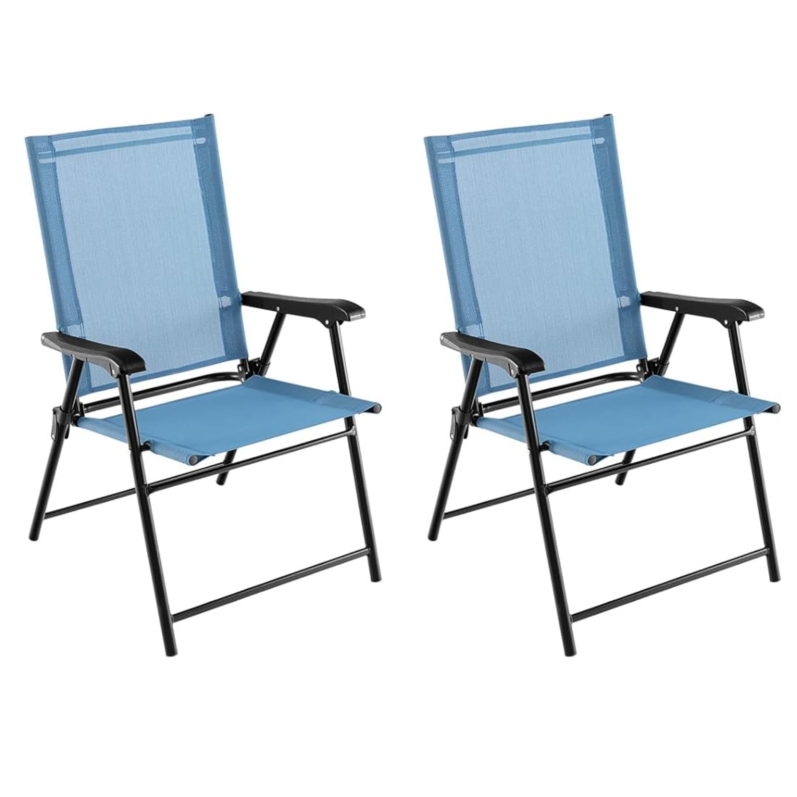 GiantexUK Folding Garden Chairs Set of 2/4, Metal Frame Dining Chairs with High Backrest, Armrests & Anti-slip Foot Pads
