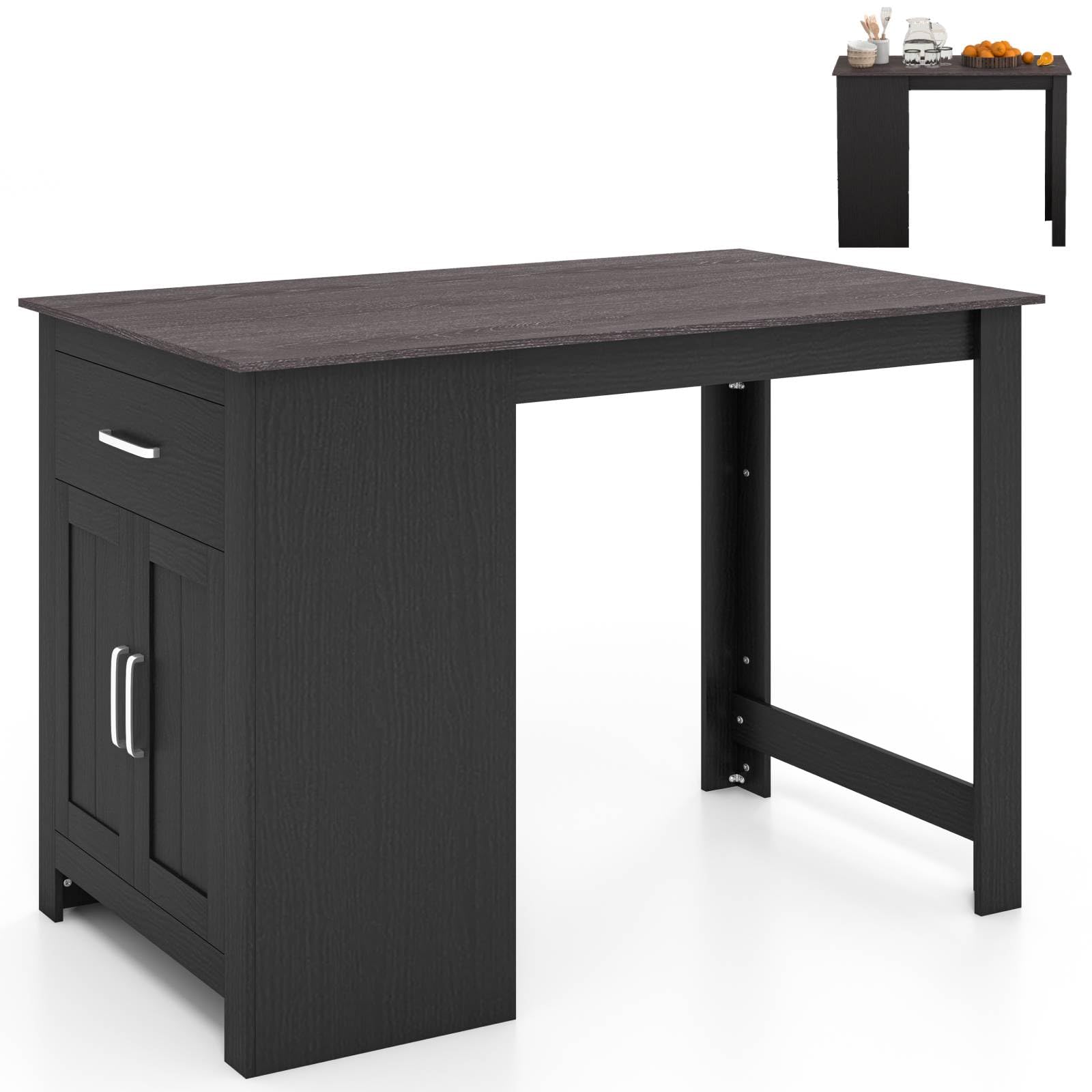 GiantexUK Rectangular Bar Table, Counter Height Table with Drawer, 3-Position Adjustable Shelf & 2 Doors (Black)