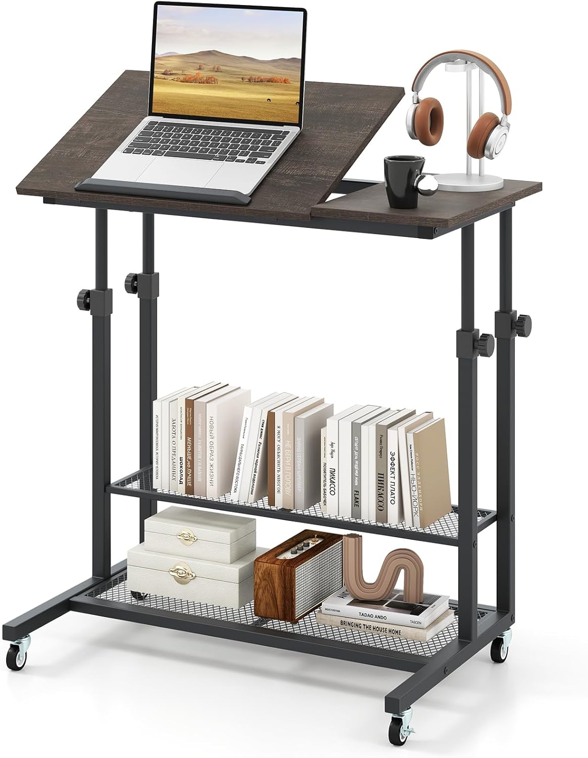 Product Details: Optimize your workspace with this mobile stand up desk. This height adjustable computer desk is designed to cater to your ergonomic needs, allowing you...