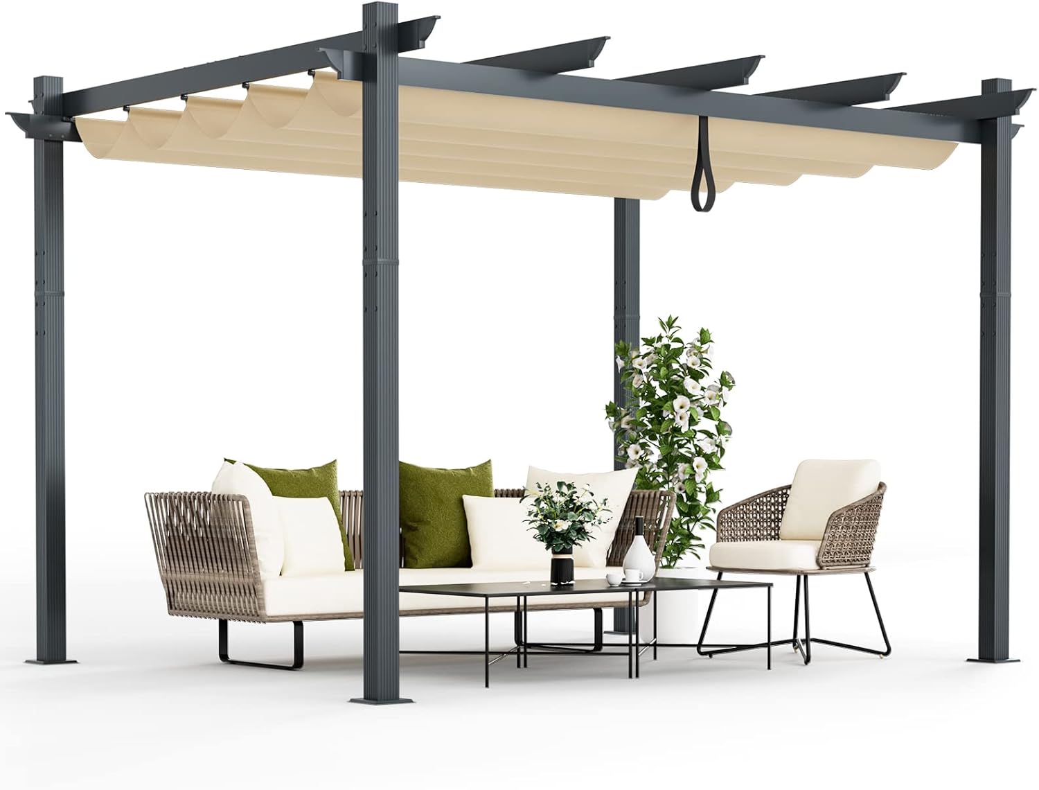 3 x 3m metal pergola with retractable roof with sun shade canopy