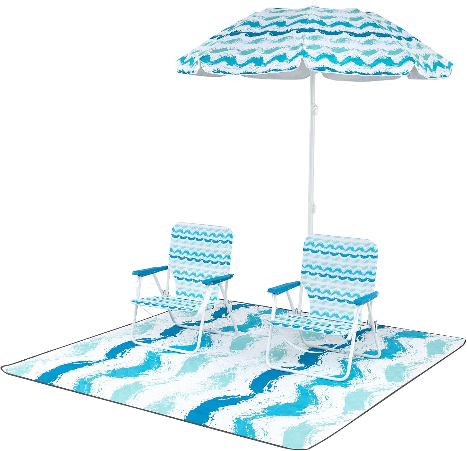 4 pieces beach umbrella set with 2 foldable chairs and picnic blanket
