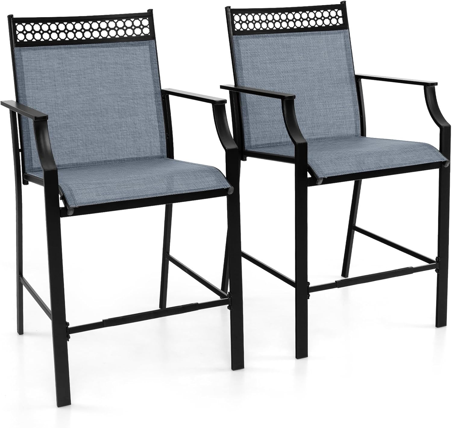 Fabric outdoor bar stools set of 2 with high back armrests & footrest