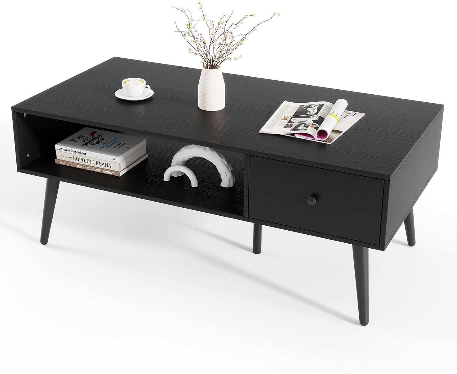 Product Details: Our exquisitely crafted mid-century coffee table with storage can make your living room well organized and elegant! The rustic wood grain surface of the...