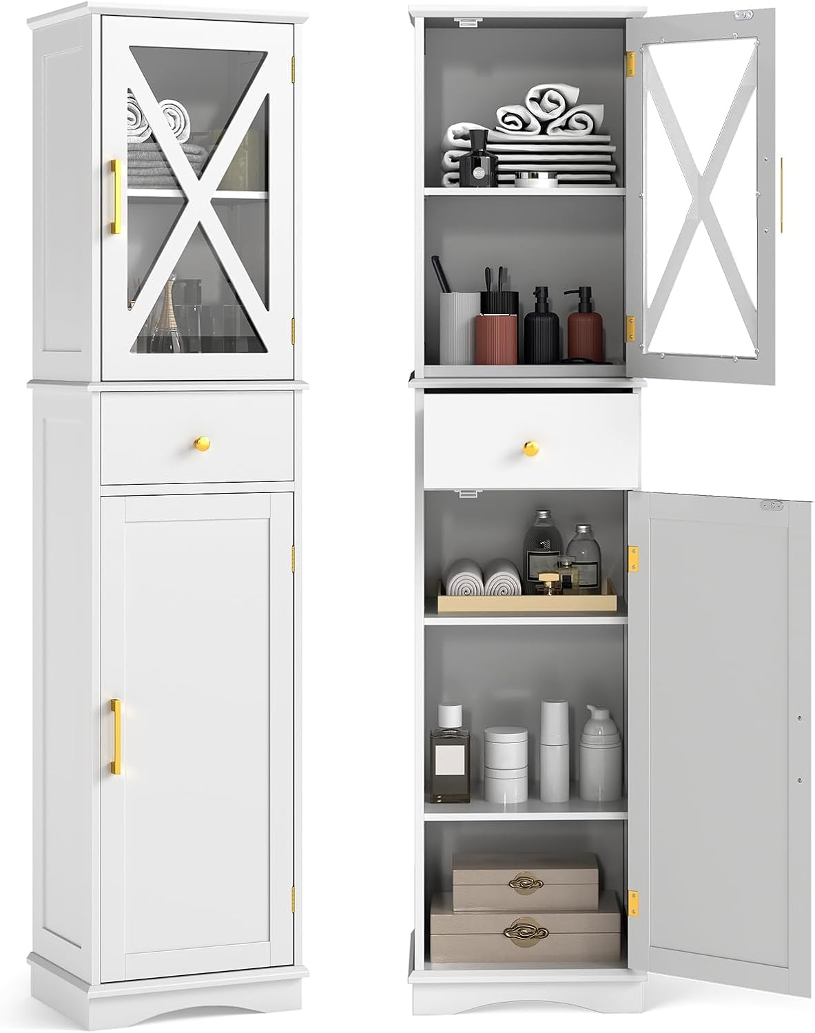Product Details: Keep your belongings safe and your space organized with our tall bathroom cabinet. This freestanding bathroom cabinet boasts a solid wooden construction and an...
