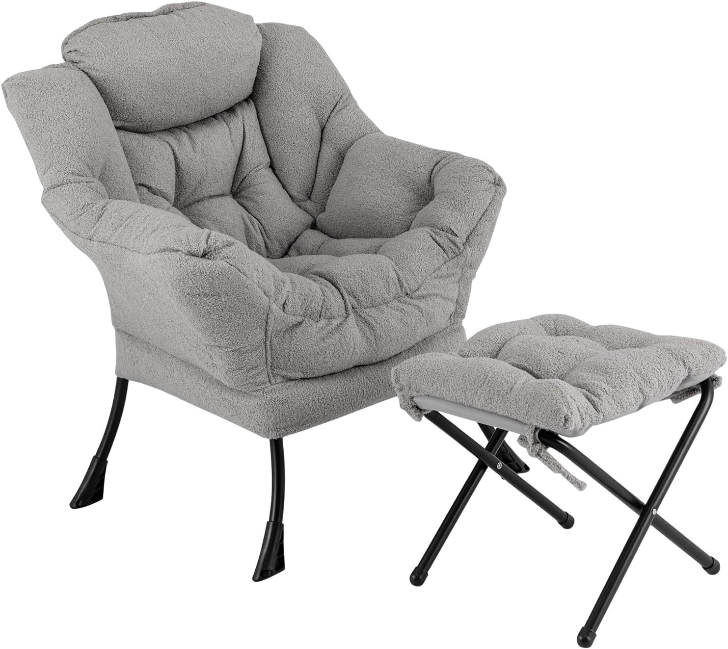 Giantex armchair accent chair sherpa upholstered lounge armchair leisure sofa chair (with footstool)