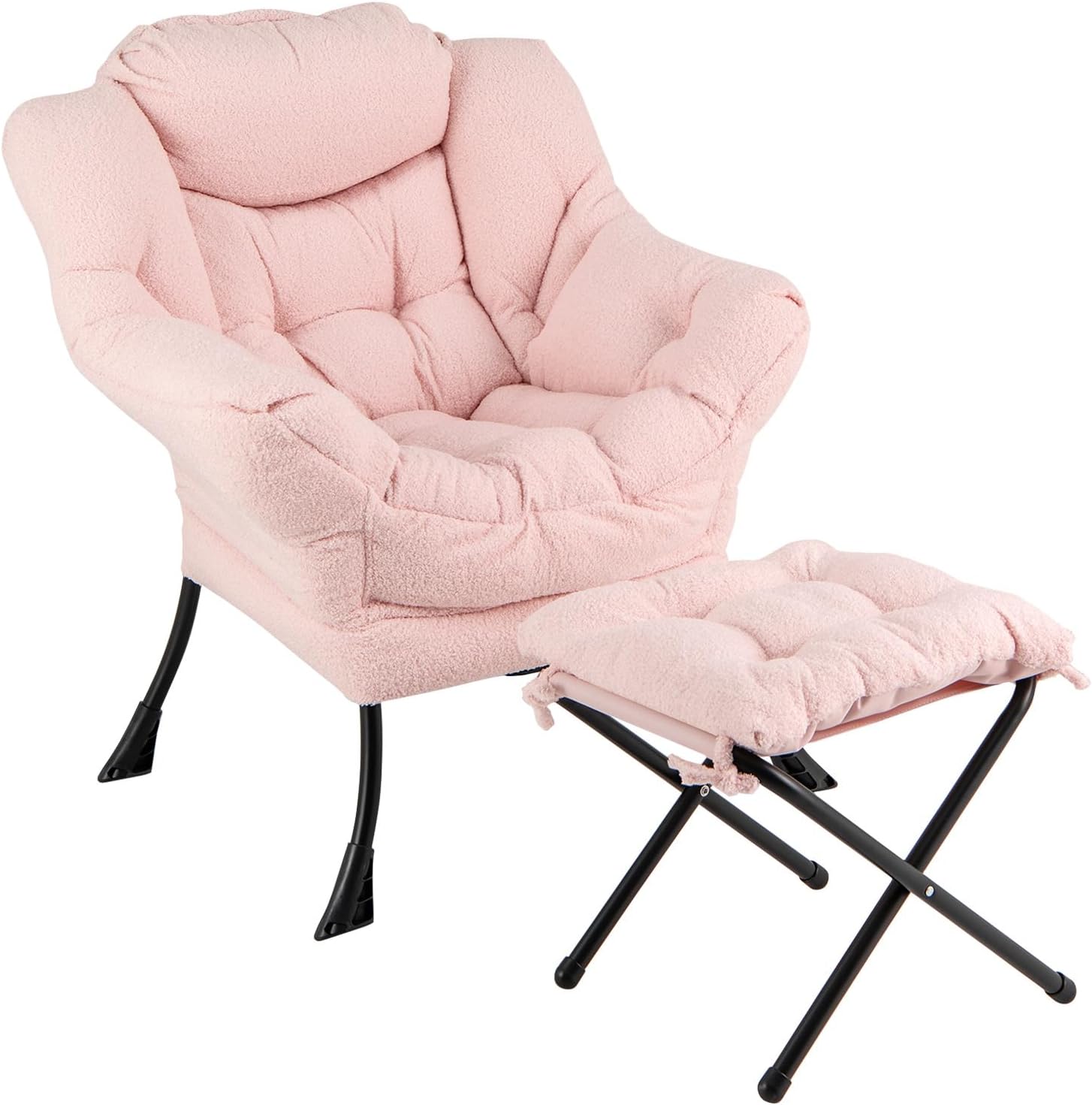 【Ergonomic Lazy Chair with Footstool】The reading chair is thoughtfully designed with 1 comfy backrest with a padded head pillow, 1 wide seat, and 2 supportive armrests...