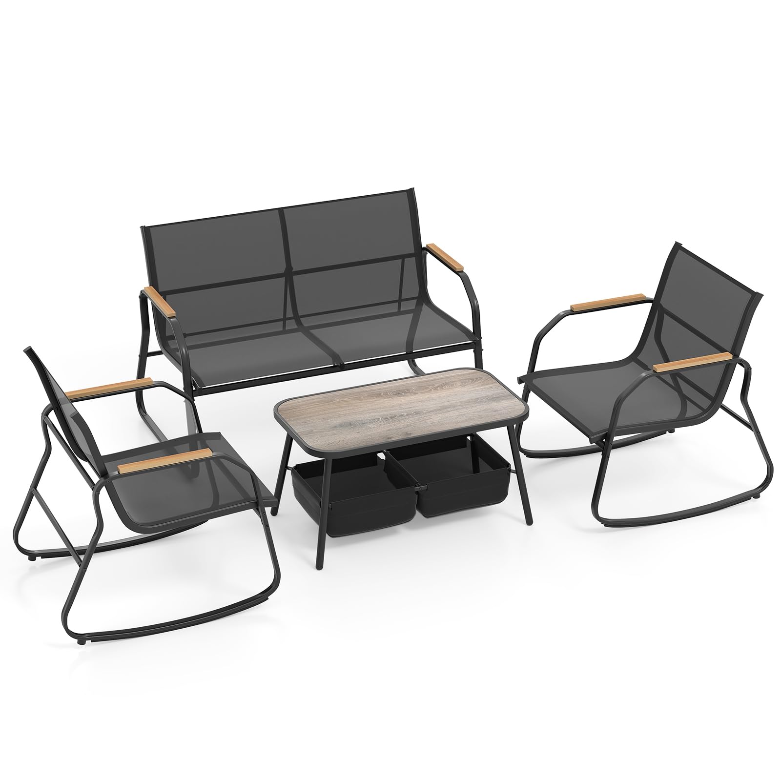 4-piece garden metal frame patio conversation set with 2 rocking chairs