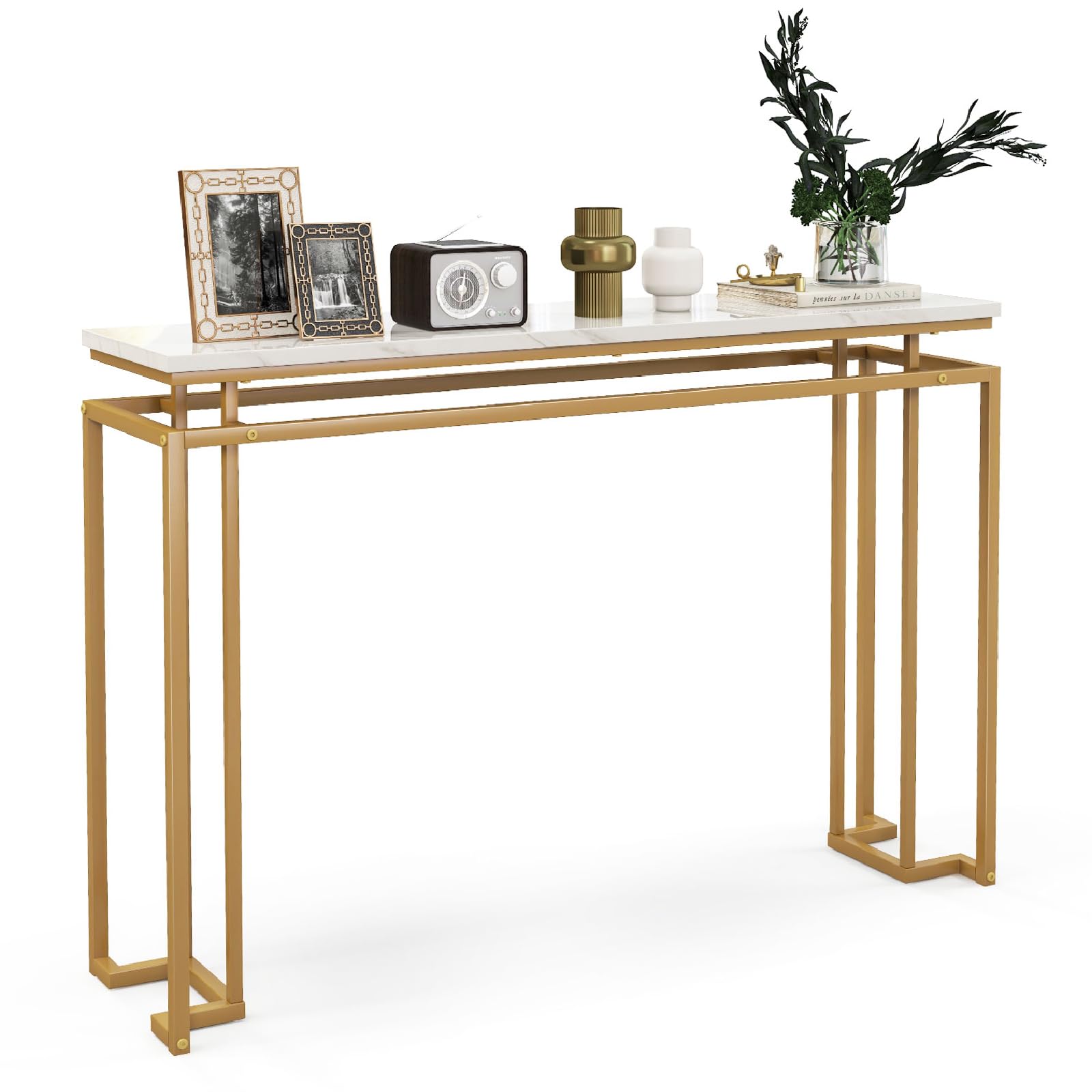 Product Details: Elevate your space with this sturdy & durable console table! Immerse yourself in pure luxury with its lavish white faux marble tabletop and glamorous...