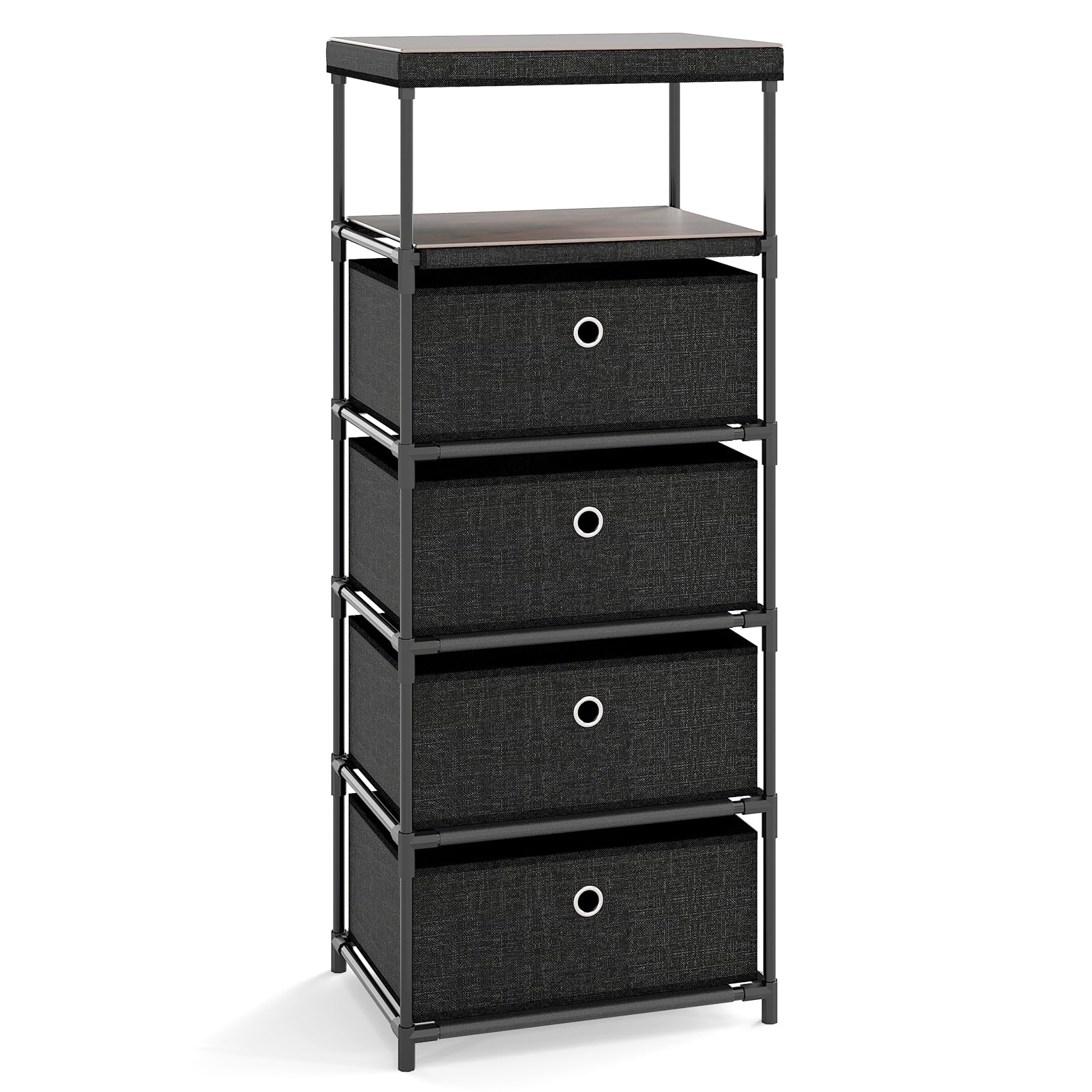 Product Details: The fabric storage dresser offers ample space with foldable drawers, a countertop, and an extra shelf. Made of metal tubes, the vertical storage unit...