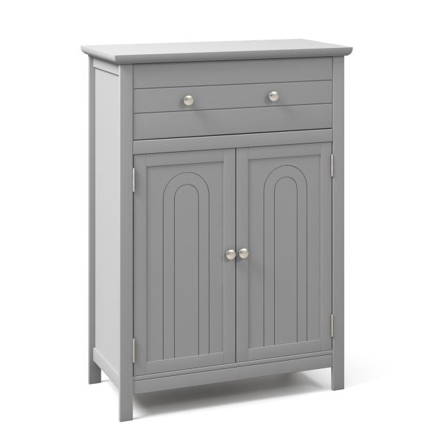 Freestanding floor storage cabinet with drawer and adjustable shelf