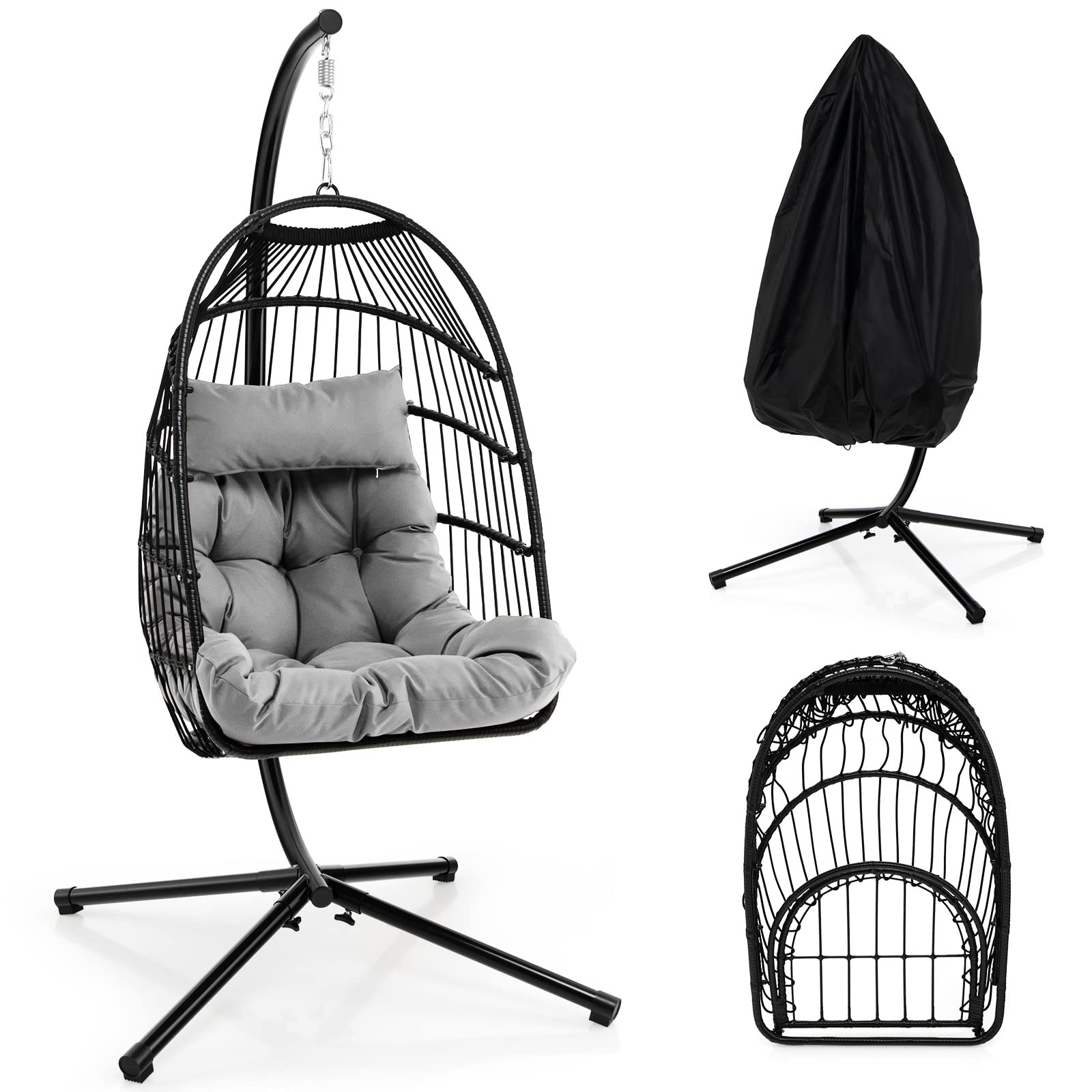 Product Details: This hanging swing egg chair will be a perfect addition to your indoor and outdoor relaxing places. The chair is equipped with a head...