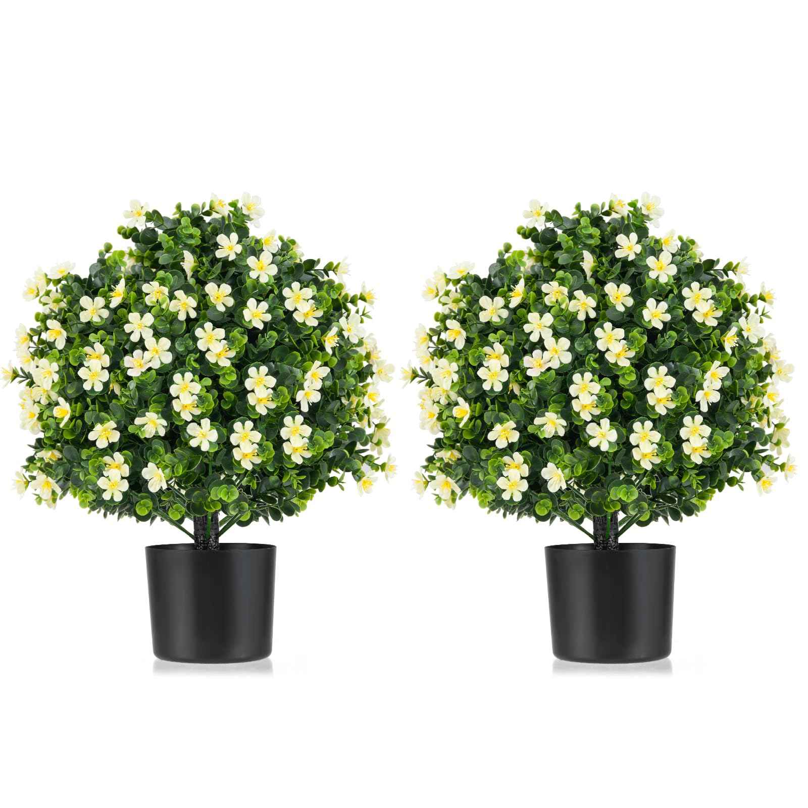 2 piece artificial boxwood topiary ball tree with uv rated leaves and 343 white fruits