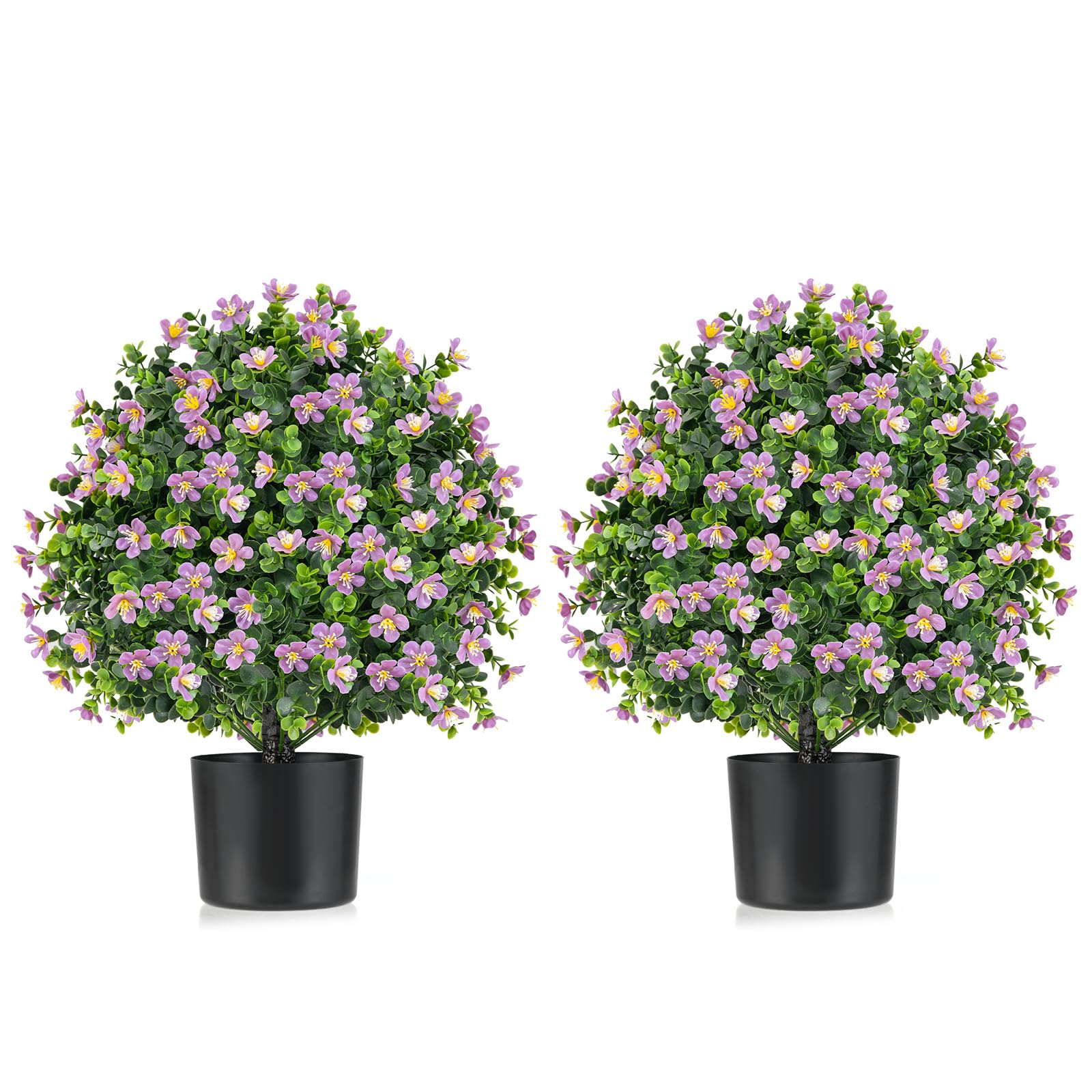 2 pack faux shrub bushes with flowers and plastic nursery pot