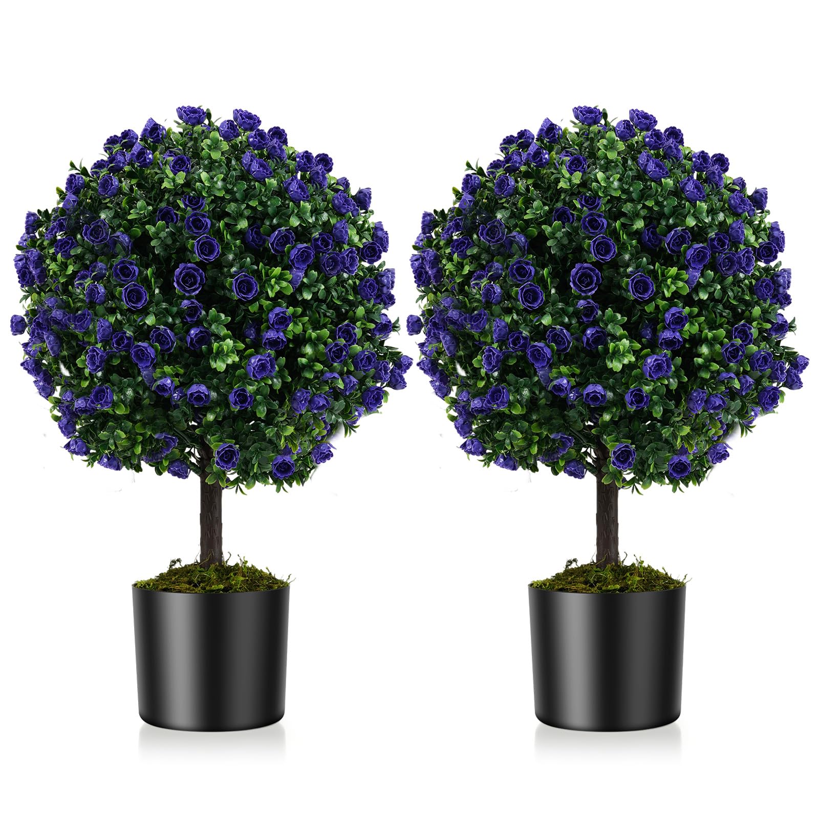 Set of 2 Artificial Purple Rose Topiary Ball Trees 55cm Faux Boxwood Ball Tree