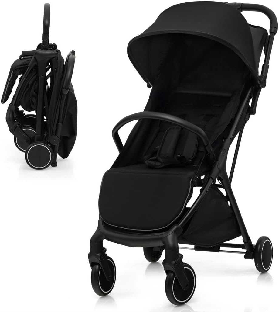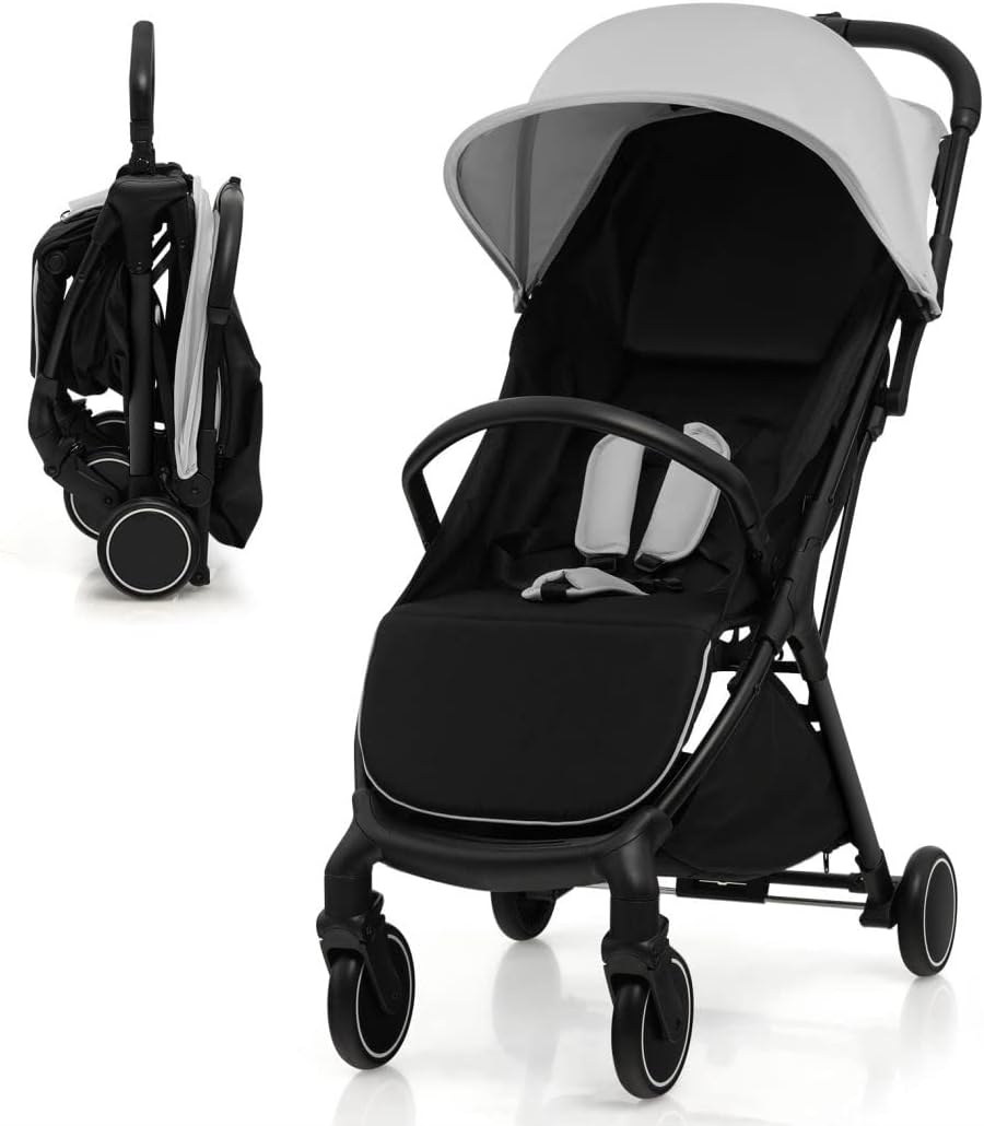 Lightweight baby stroller, one-hand foldable infant pushchair with 5-point harness