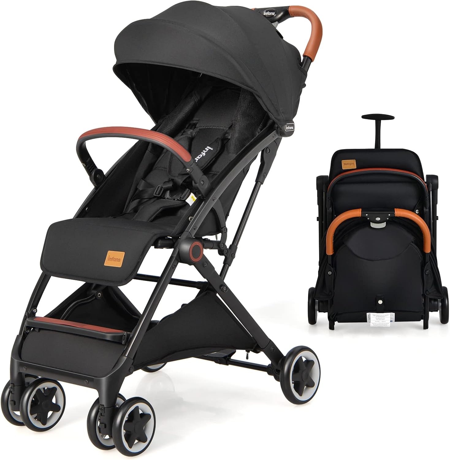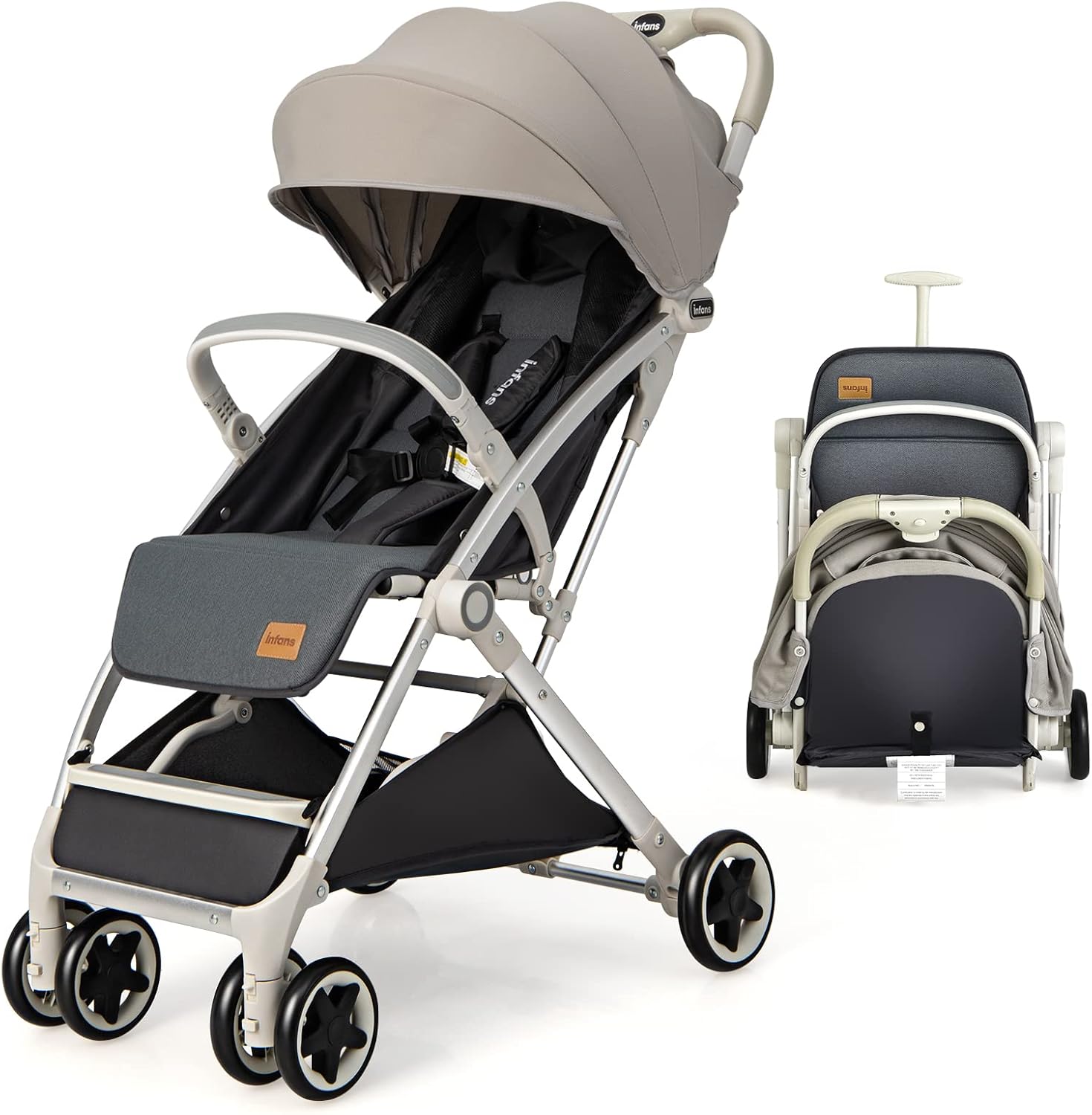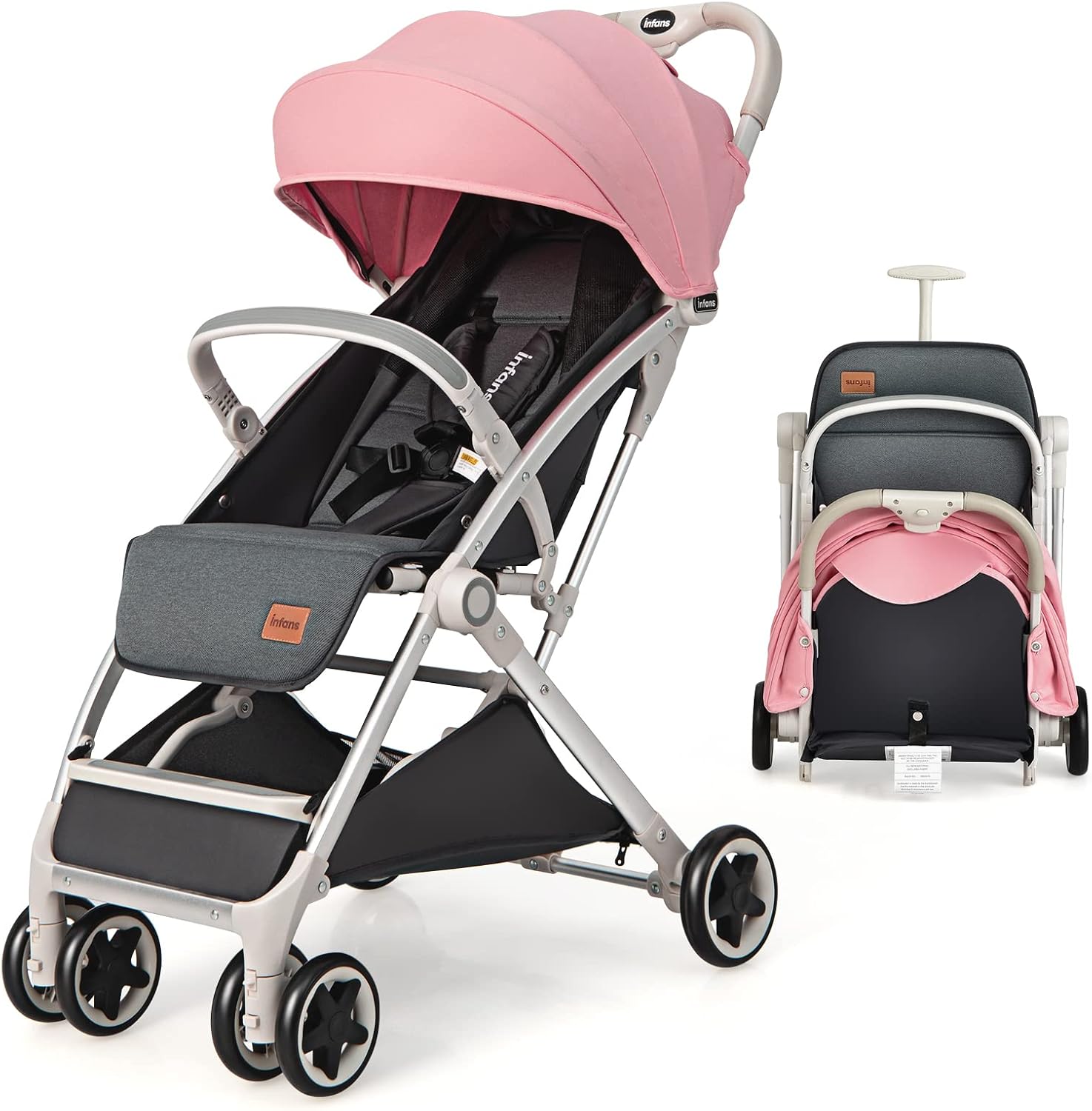 One-hand foldable infant pushchair with 5-point harness