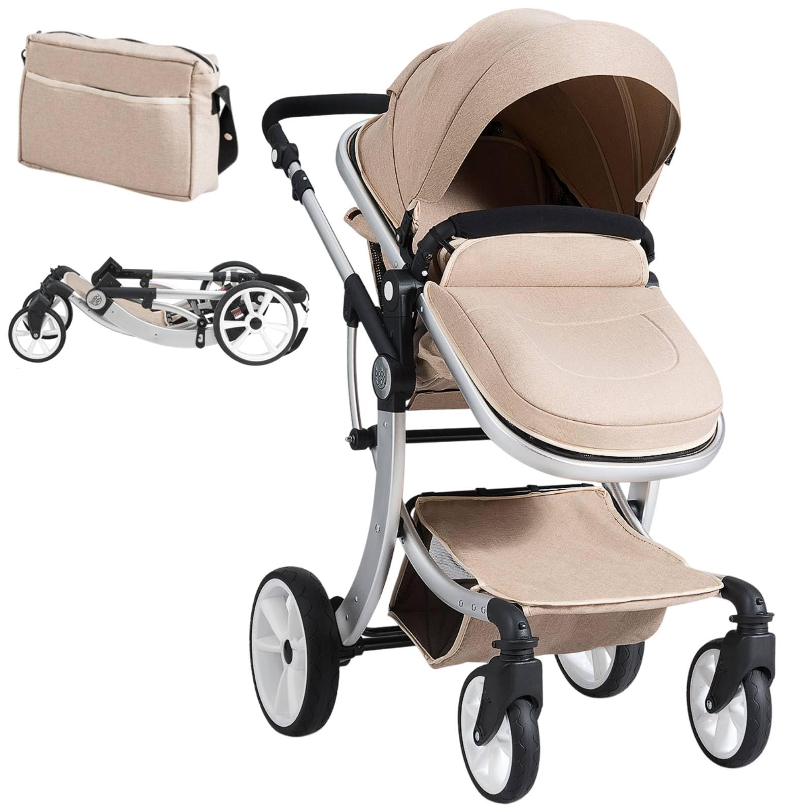 2 in 1 baby pushchair, foldable travel system pram with reversible seat, adjustable canopy & handle