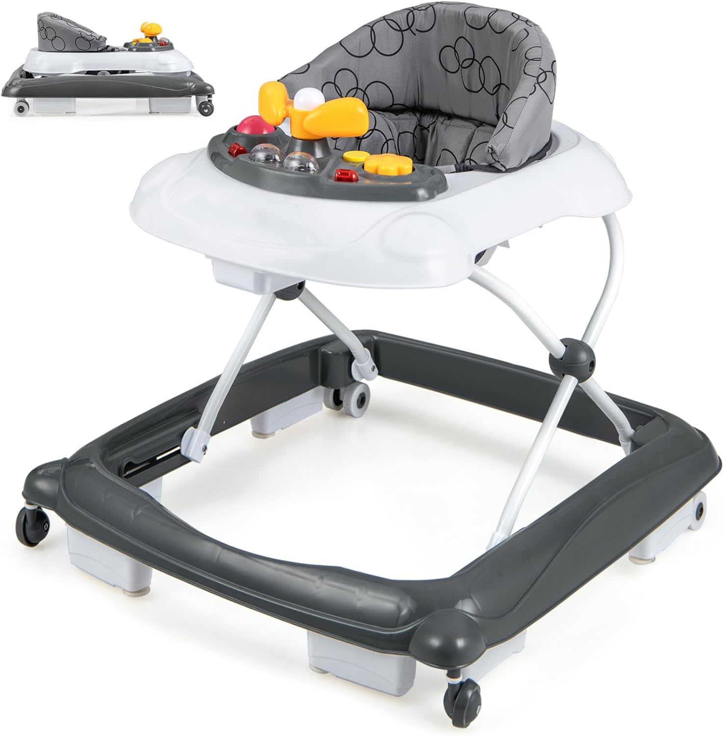 4-in-1 baby walker foldable push along walkers with adjustable height & speed