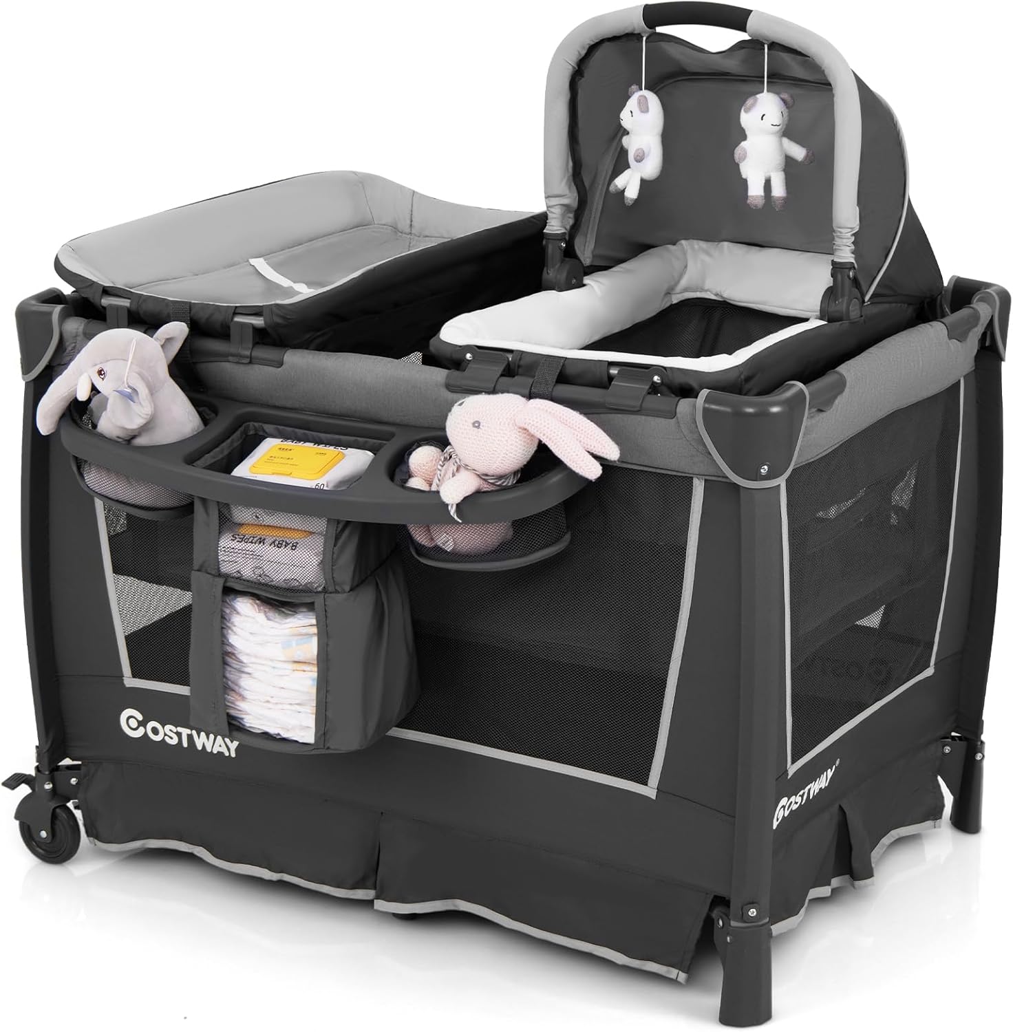 Description: Our 5-in-1 portable baby playard is ideal to grow up with your baby! This baby bed comes with a changing table and a large storage...