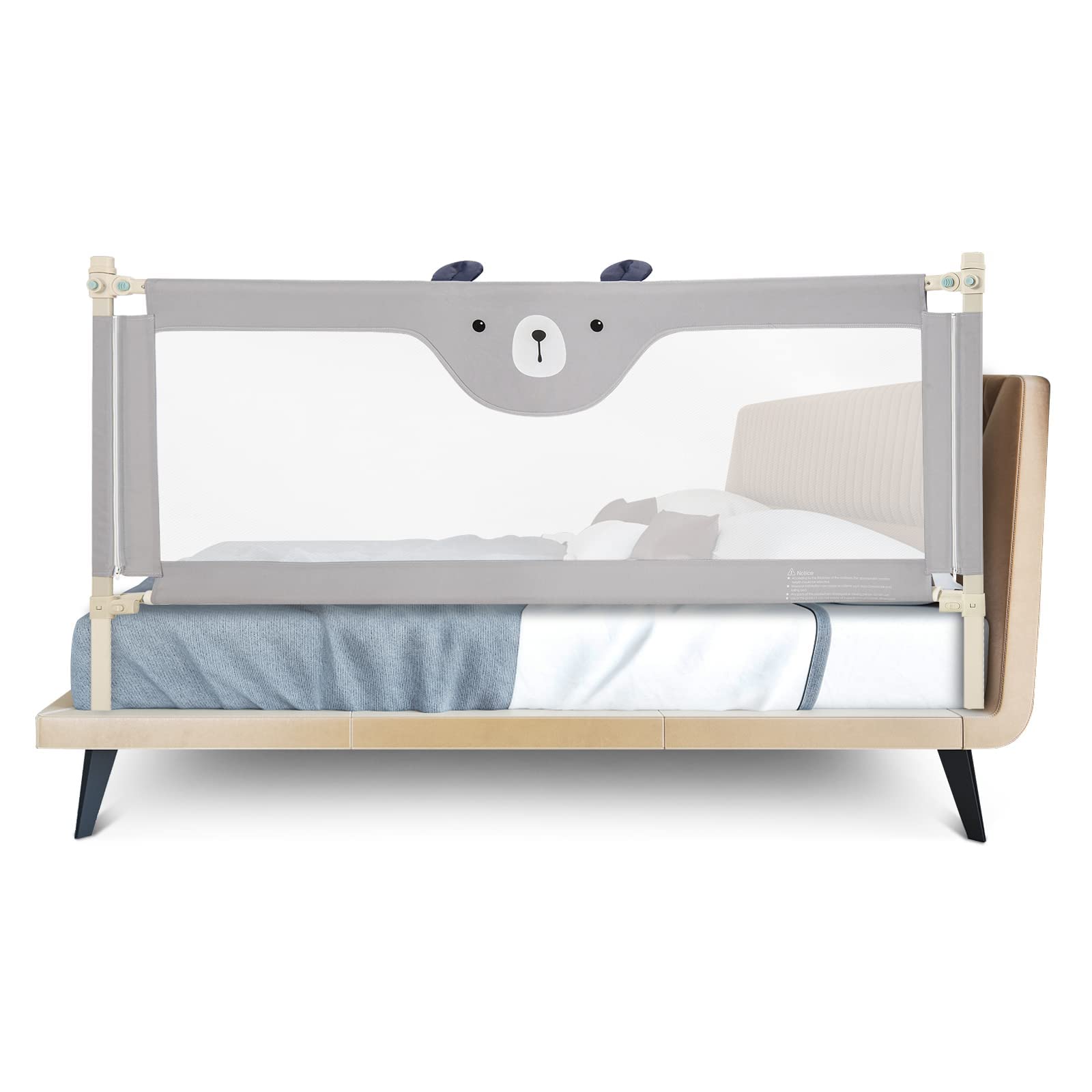 Bed rail, vertical lifting baby beds guard with double safety lock & adjustable height (175cm, grey)