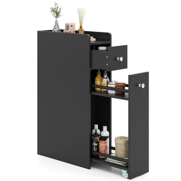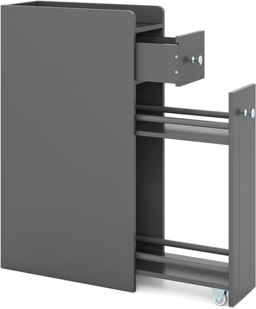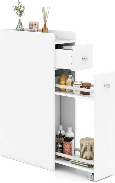 Bathroom Floor Cabinet on Wheels, Freestanding Slim Bathroom Storage Unit