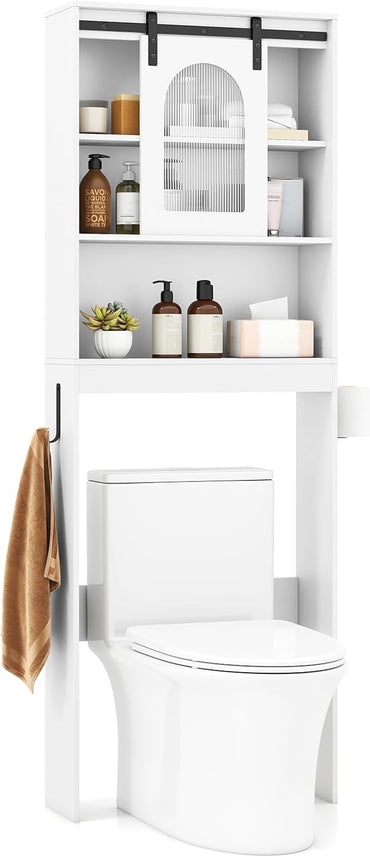 Over Toilet Storage Unit, Freestanding Bathroom Space Saver with Sliding Barn Door