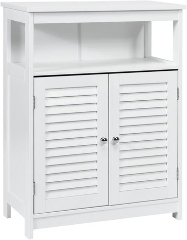 Bathroom Floor Cabinet, Wooden Freestanding Storage Cupboard with Double Shutter Door