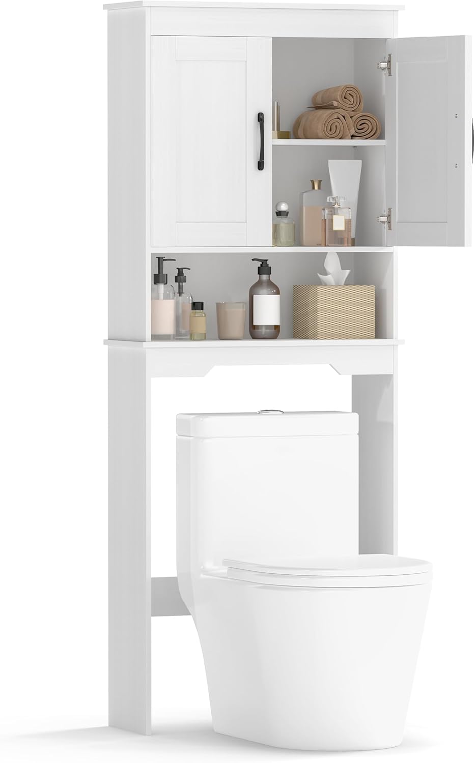 Over toilet storage unit, freestanding bathroom space saver with 2 doors